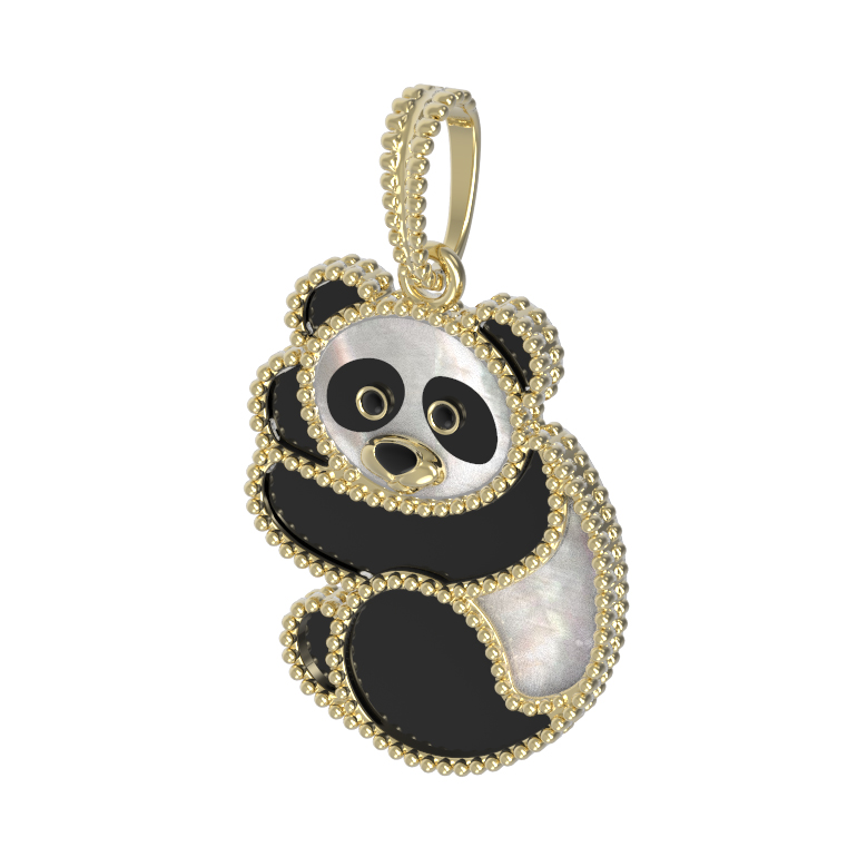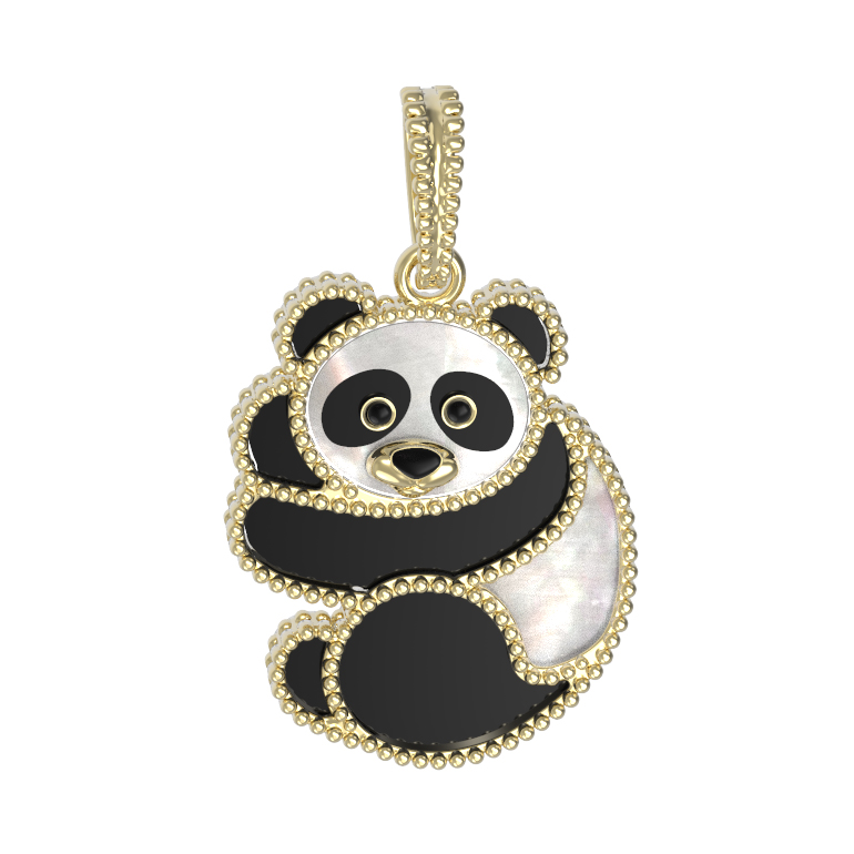 Подвеска из лимонного золота c эмалью, ониксом и перламутром