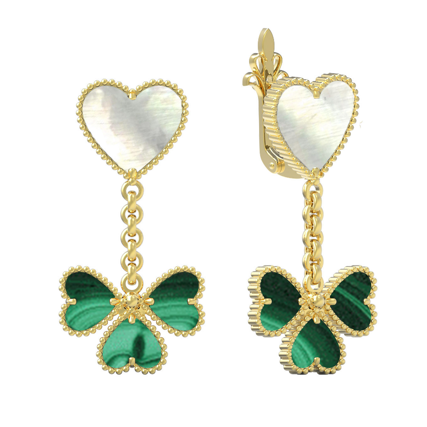 Серьги из лимонного золота c малахитом и перламутром