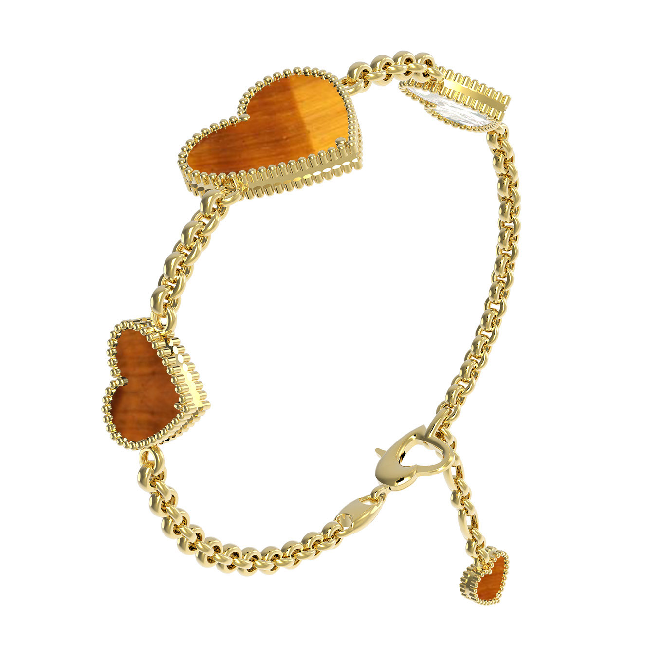 Браслет из лимонного золота c тигровым глазом и перламутром