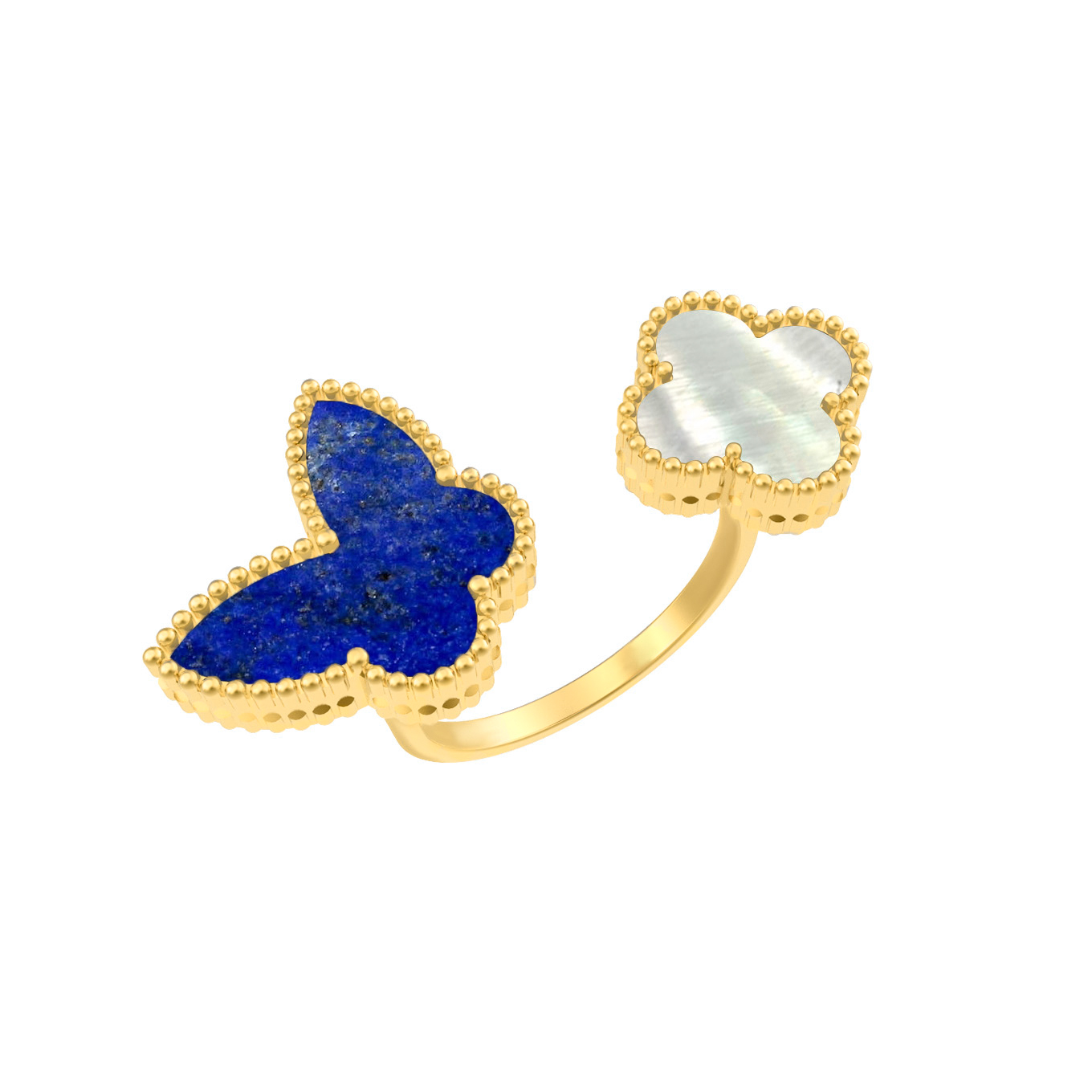 Кольцо из лимонного золота c лазуритом и перламутром