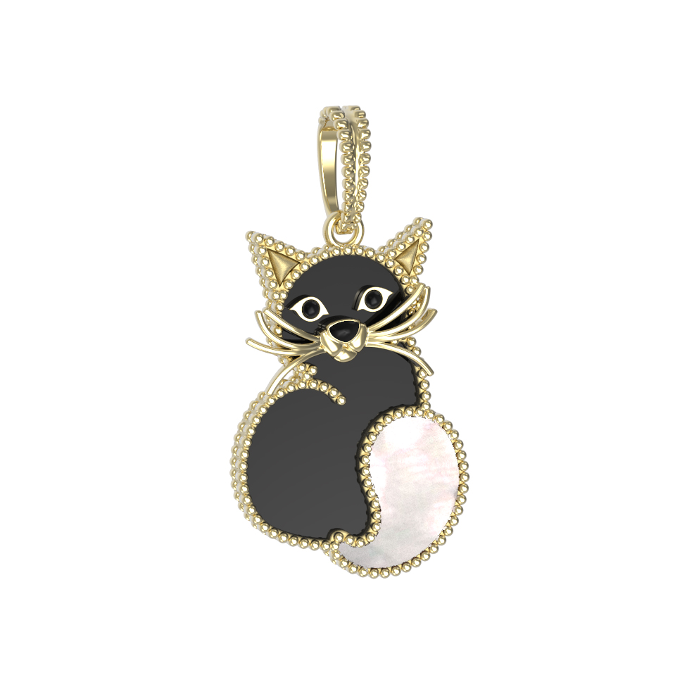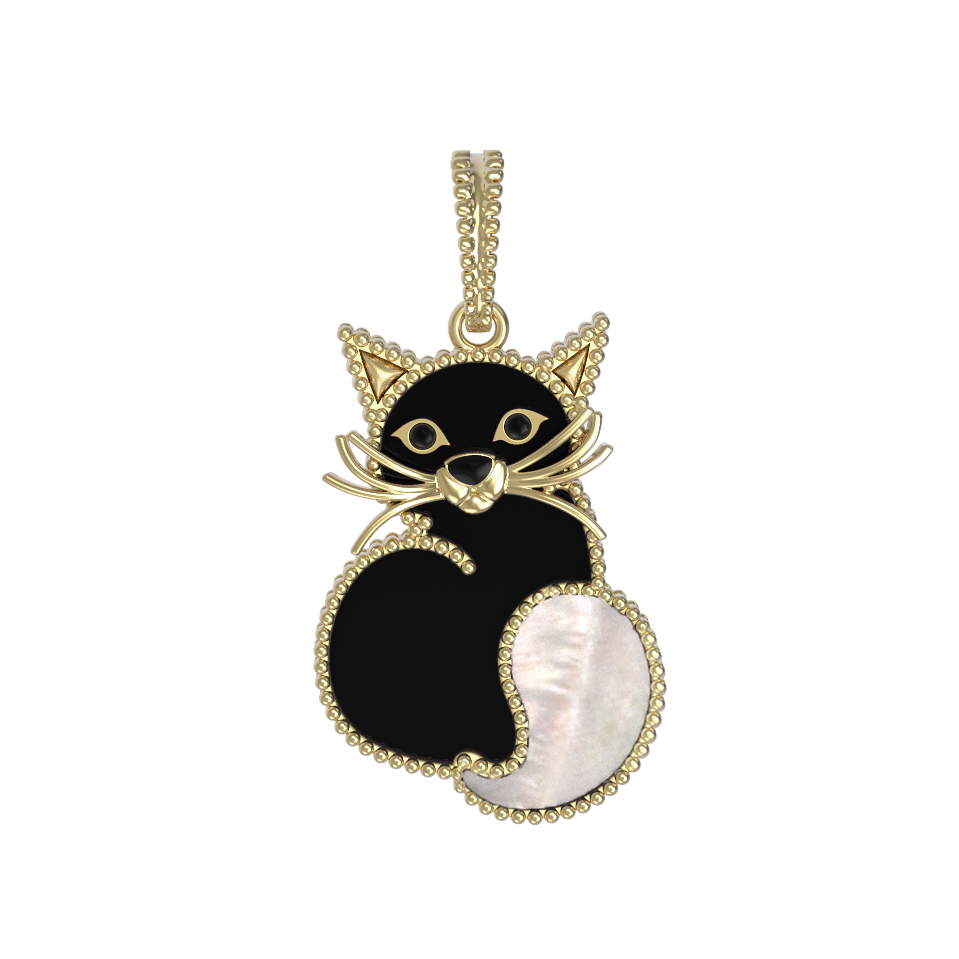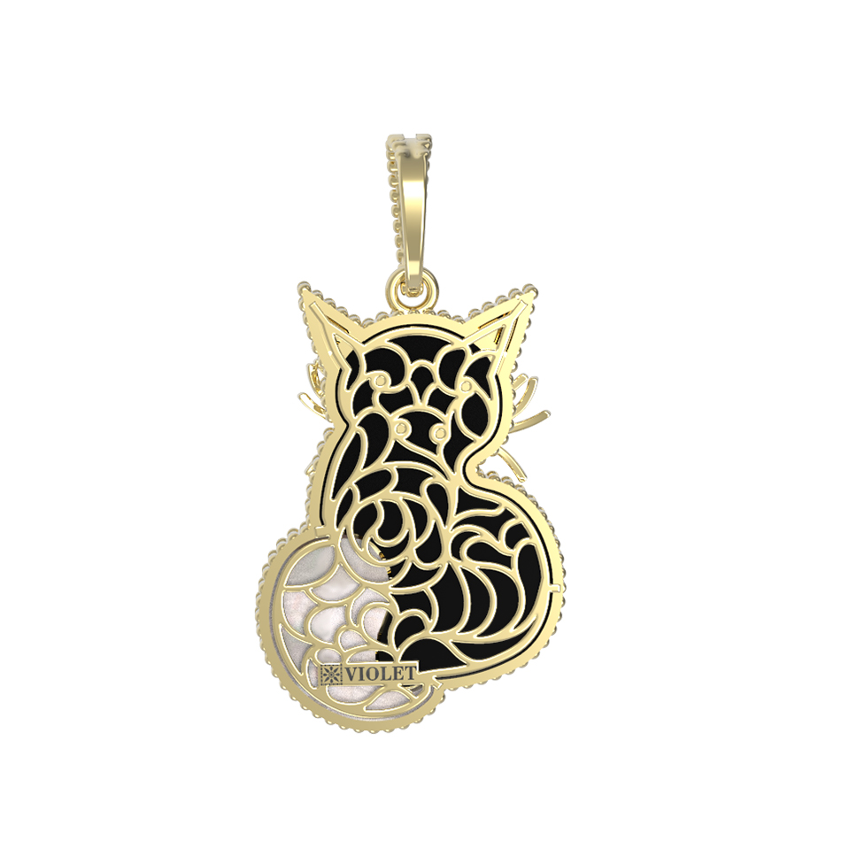 Подвеска из лимонного золота c эмалью, ониксом и перламутром