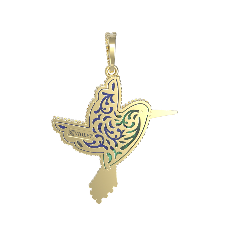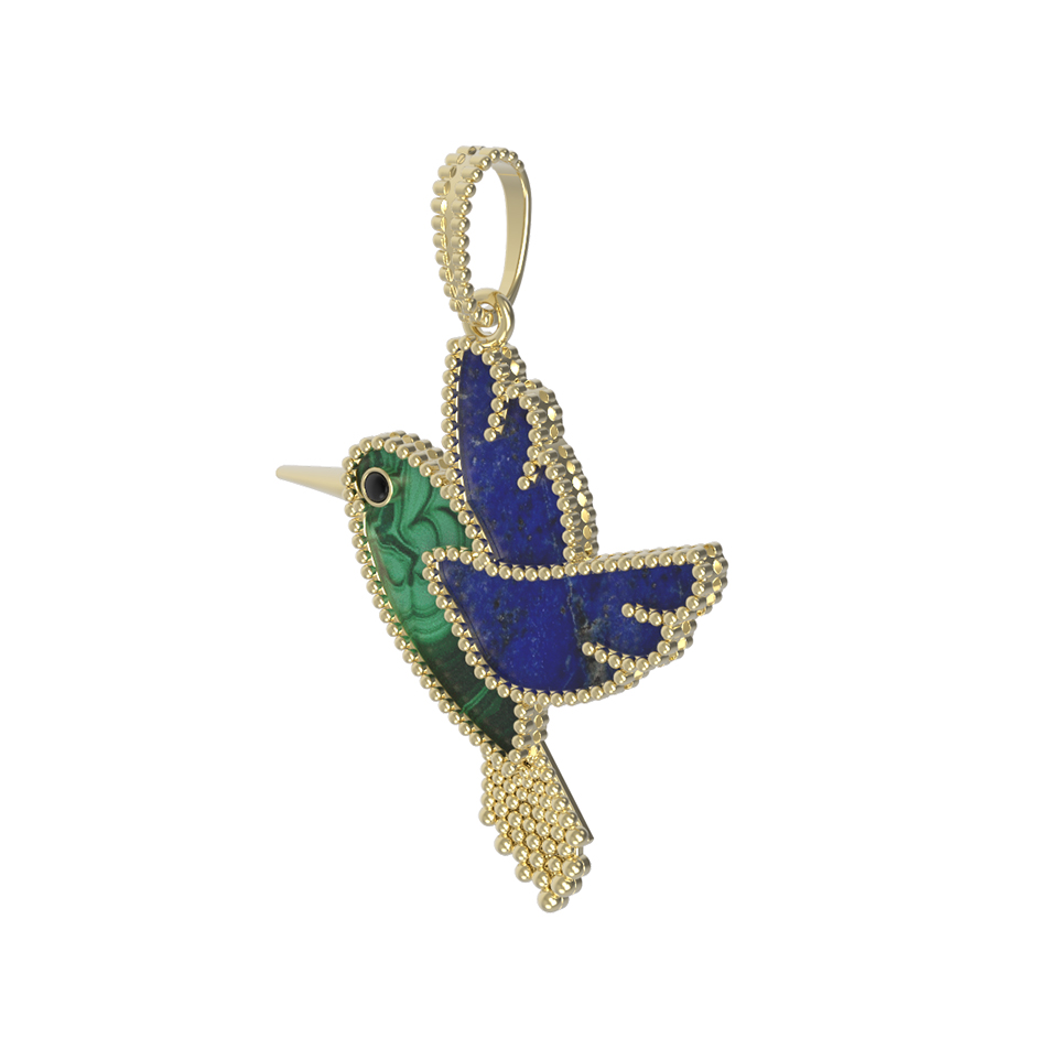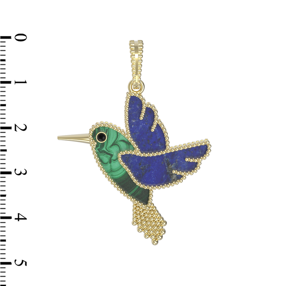 Подвеска из лимонного золота c эмалью, лазуритом и малахитом