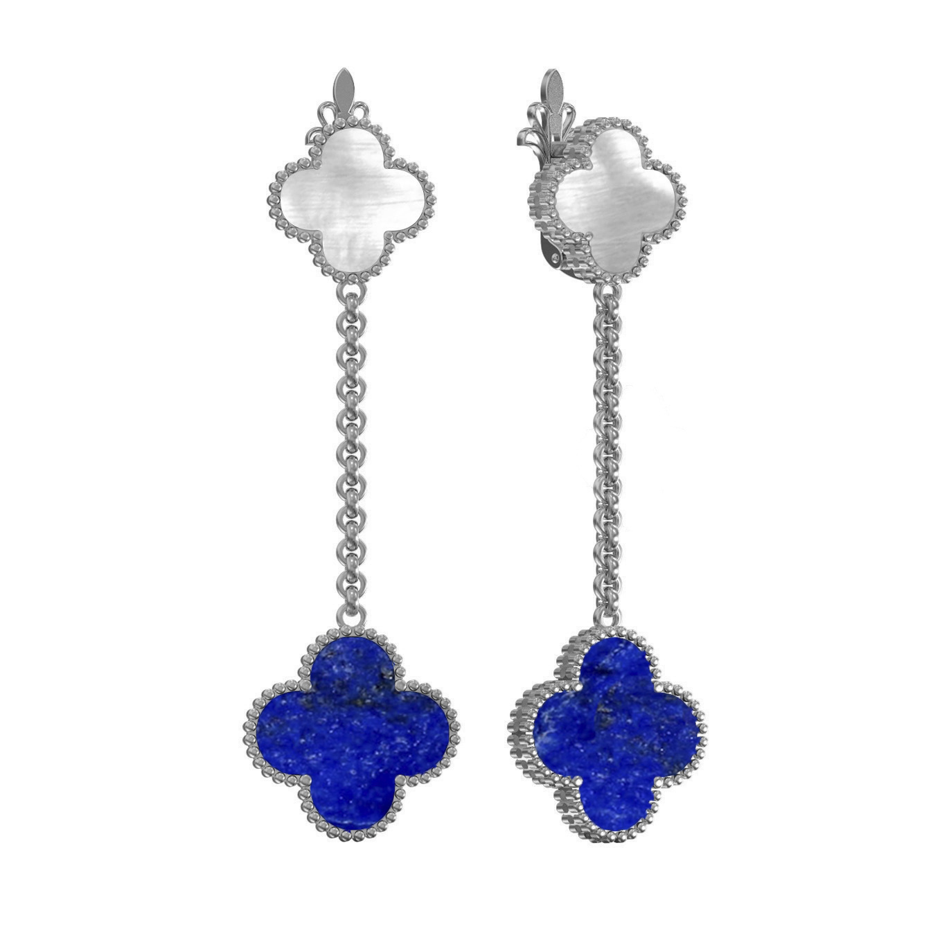 Серьги из белого золота c лазуритом и перламутром