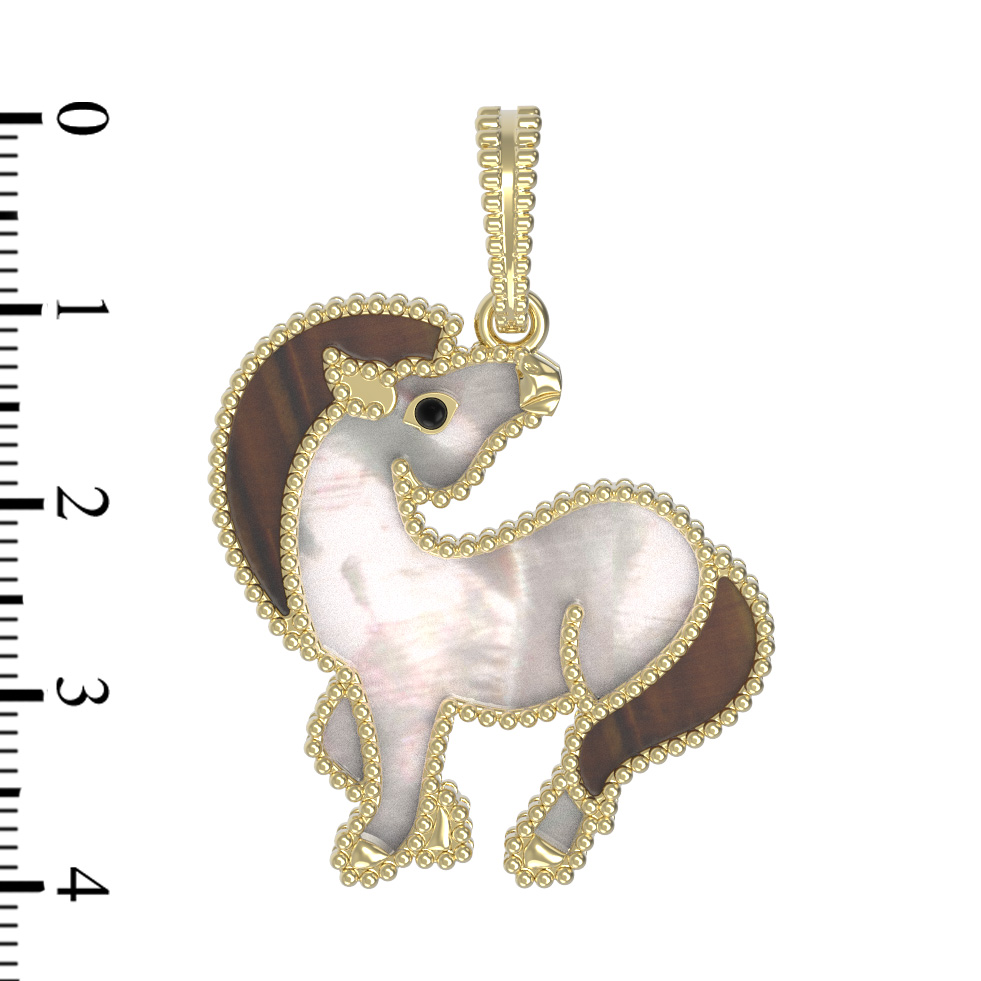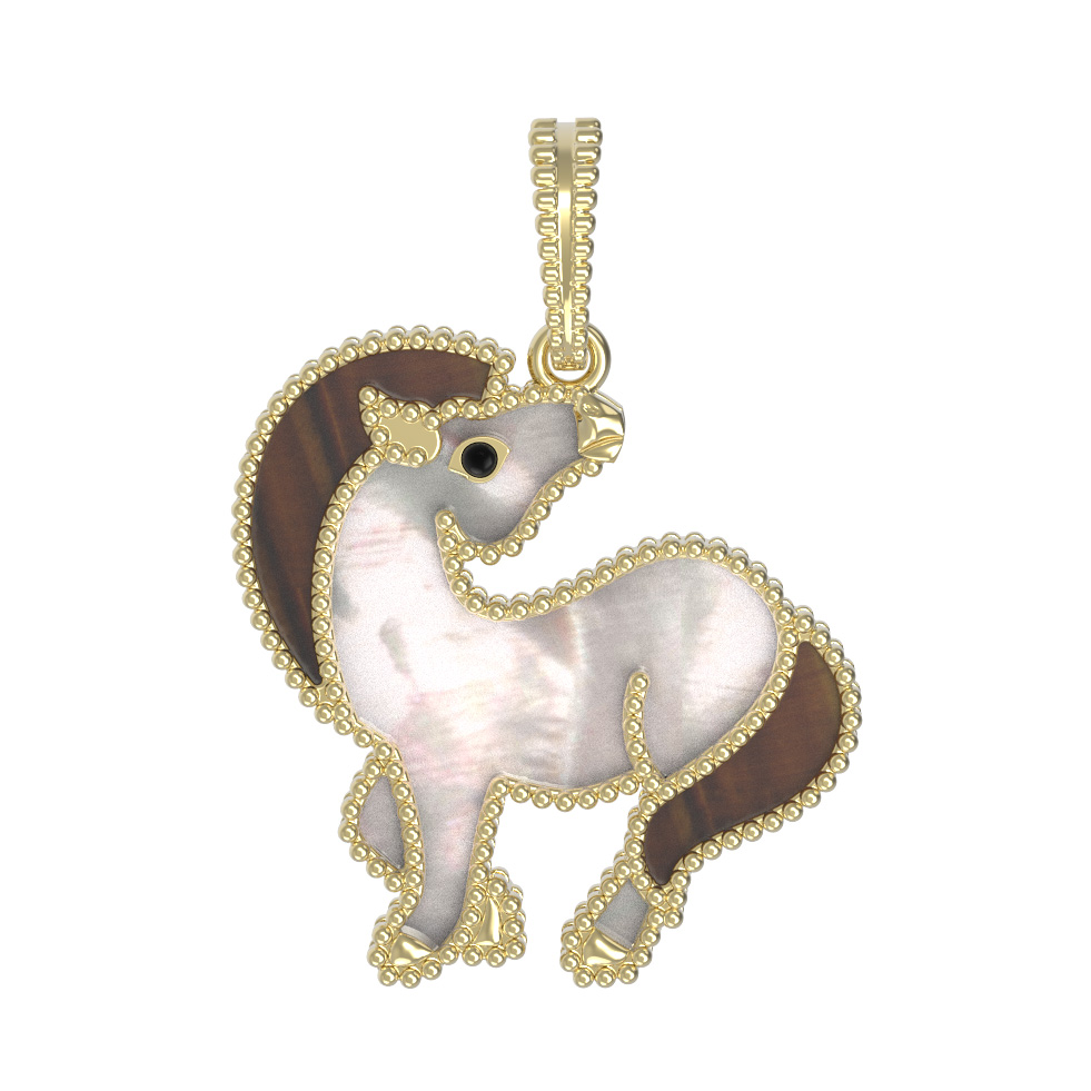 Подвеска из лимонного золота c эмалью, тигровым глазом и перламутром