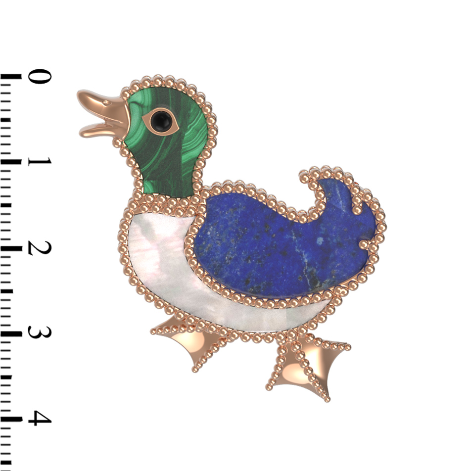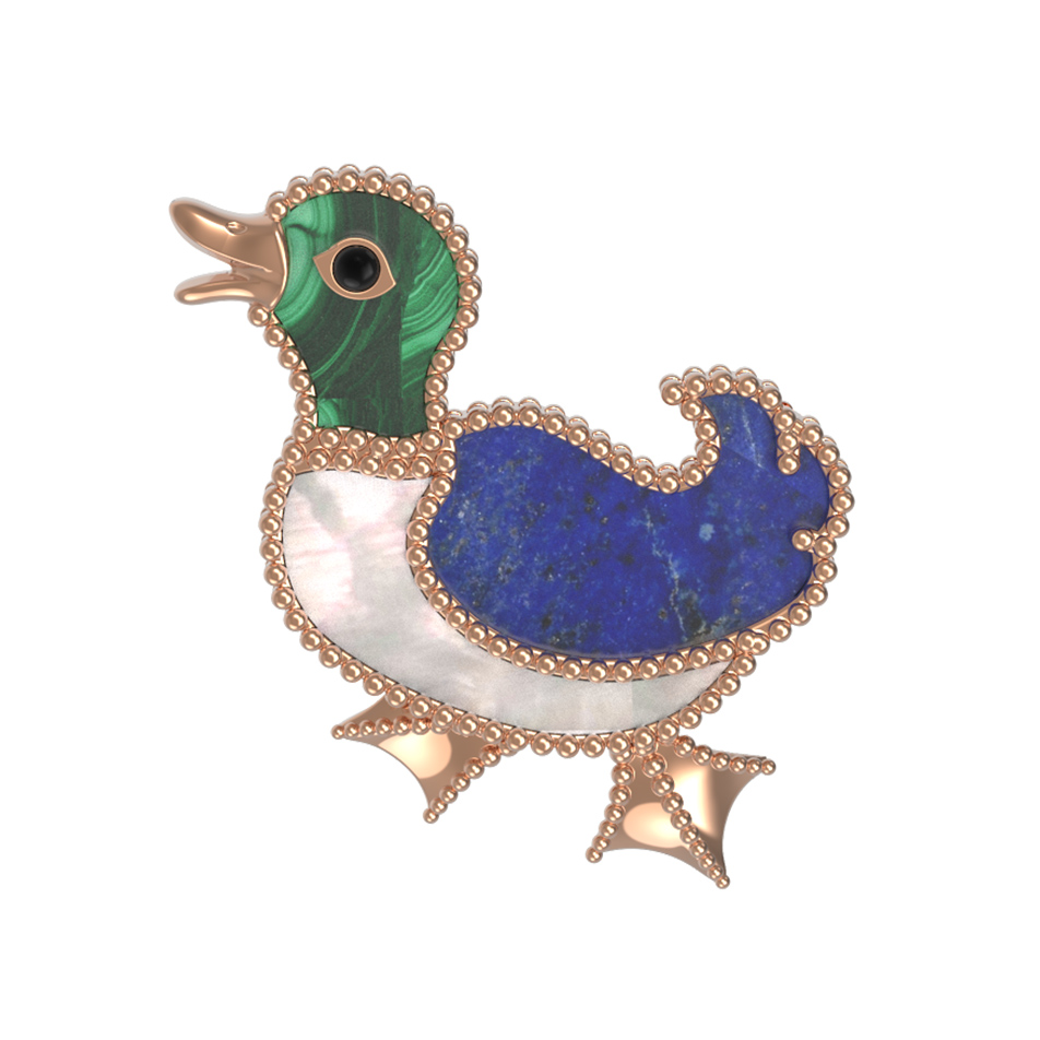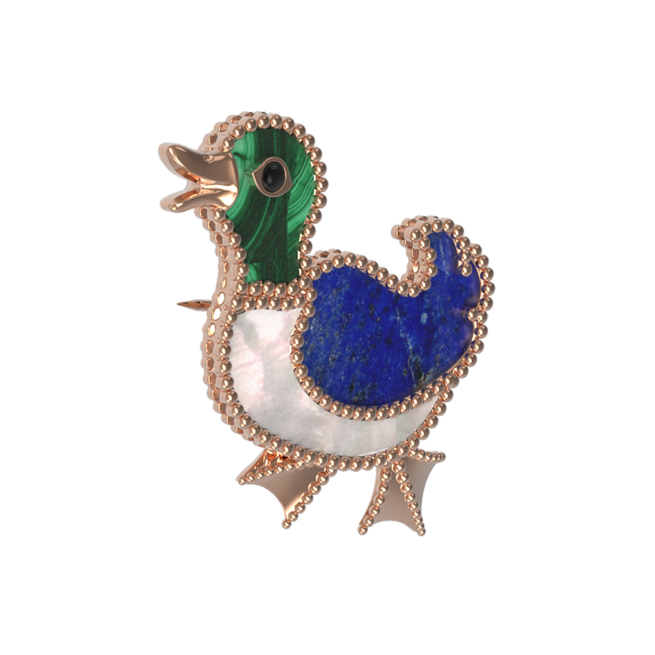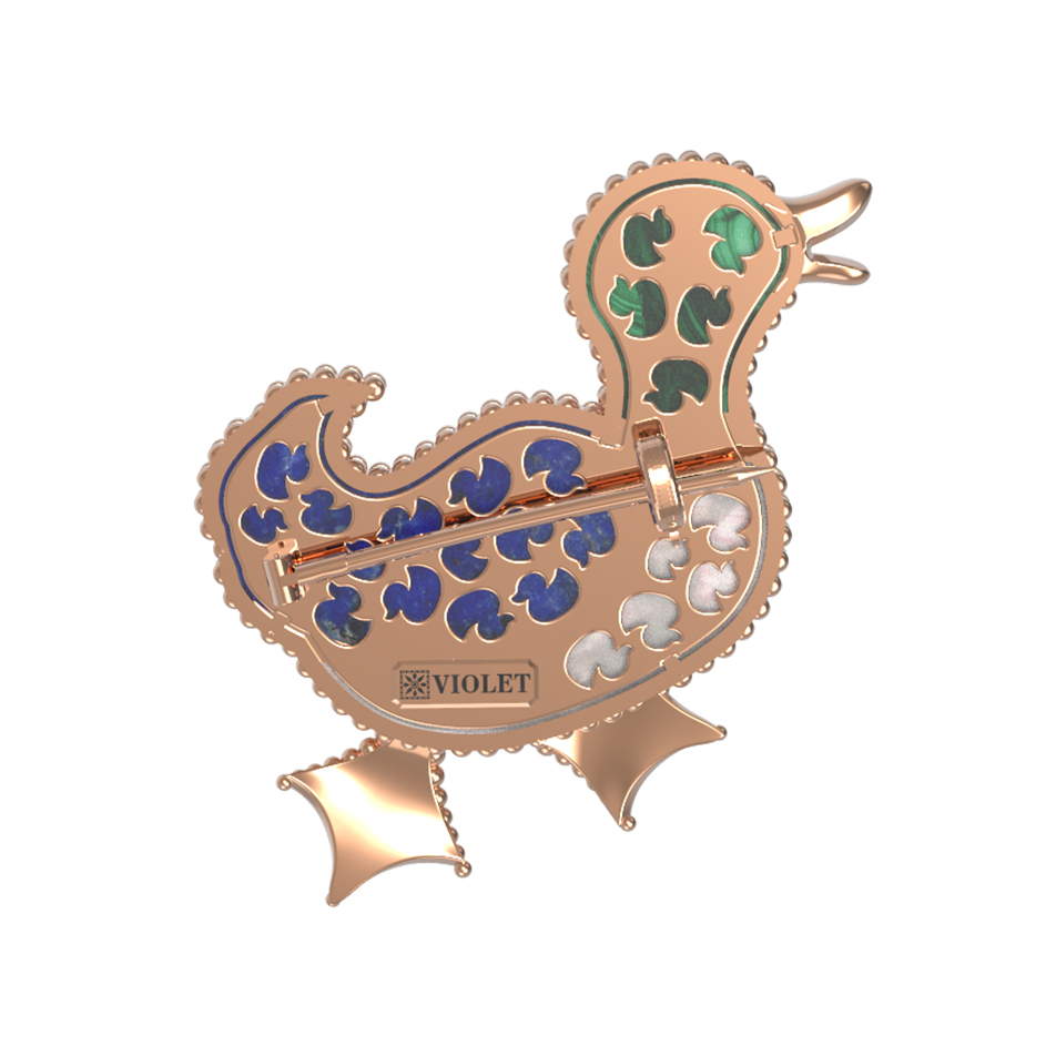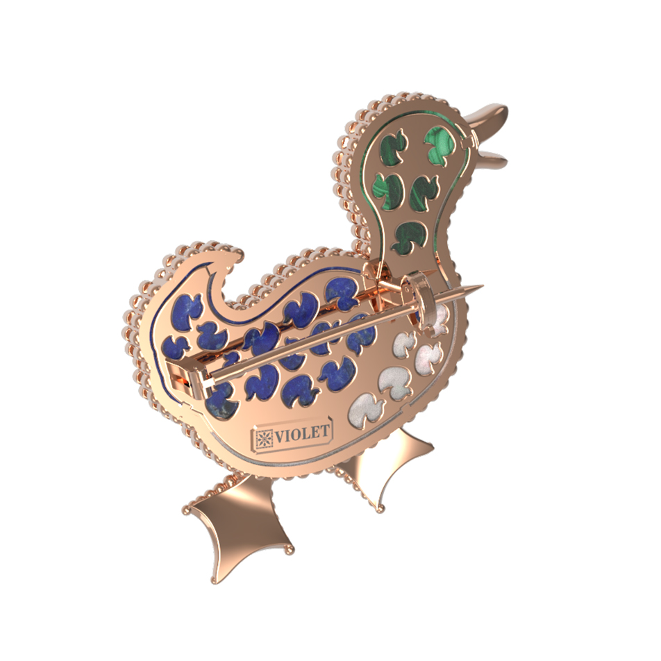 Брошь из золота c эмалью, лазуритом, малахитом и перламутром
