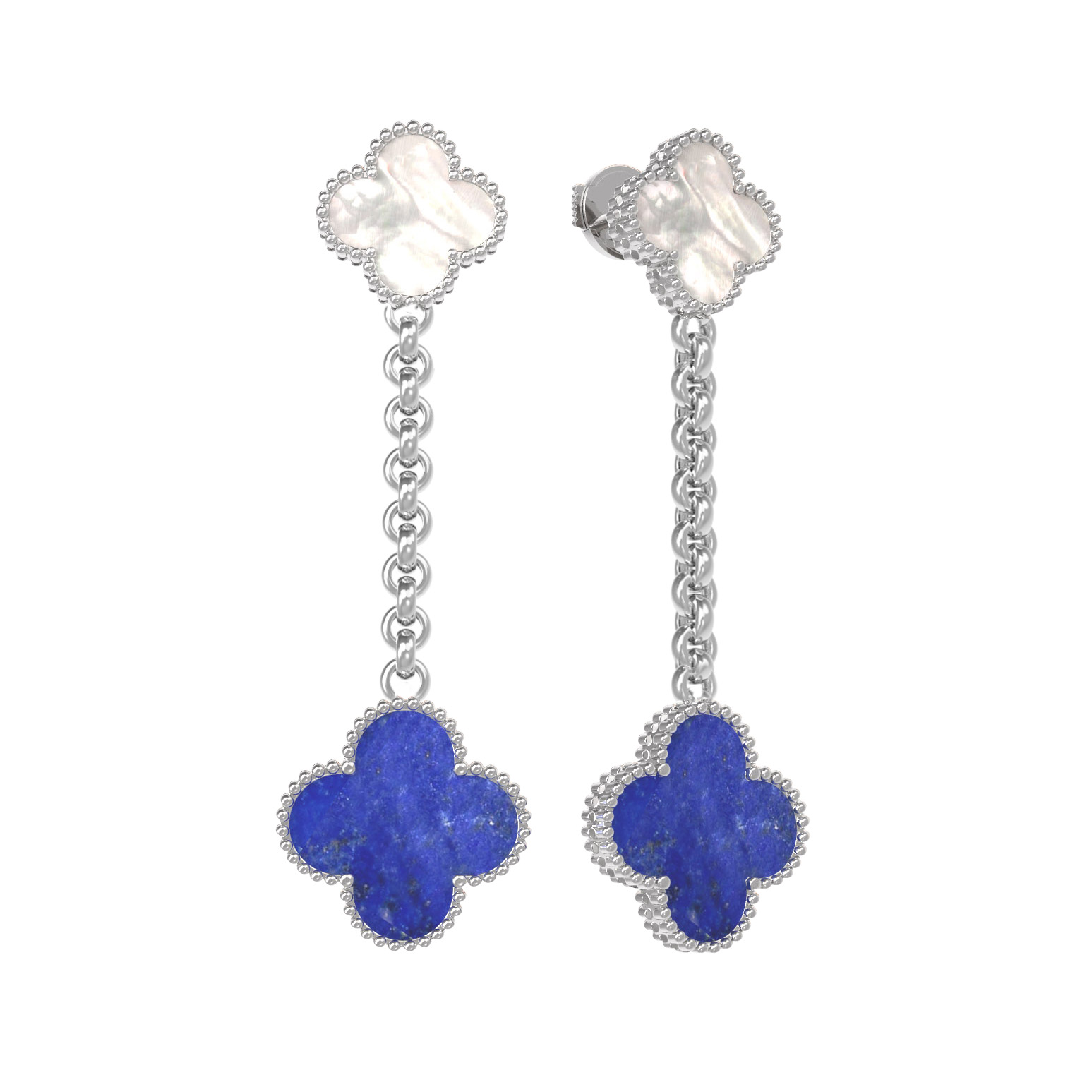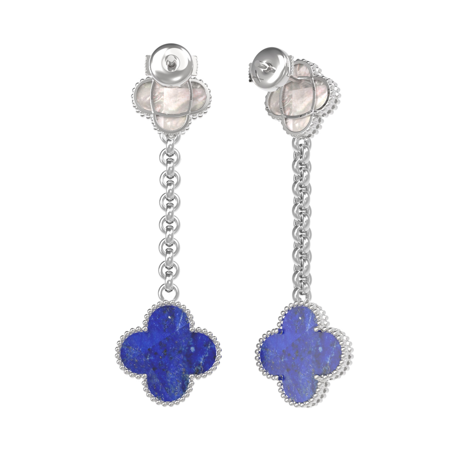 Серьги из белого золота c лазуритом и перламутром