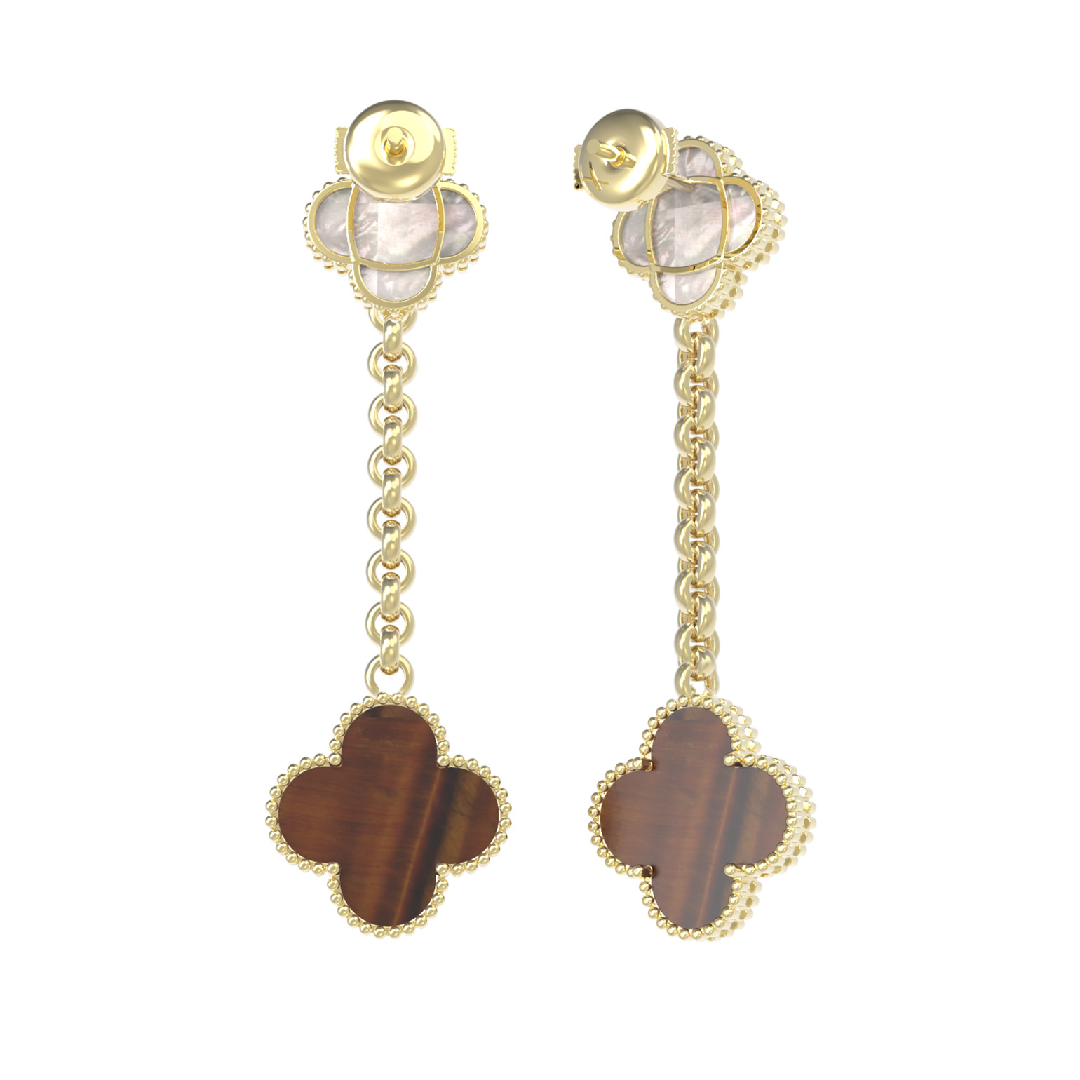 Серьги из лимонного золота c тигровым глазом и перламутром