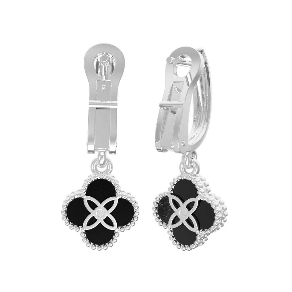 Серьги из белого золота c бриллиантами и ониксом