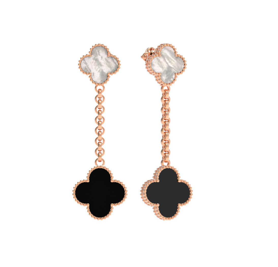 Серьги из золота c ониксом и перламутром
