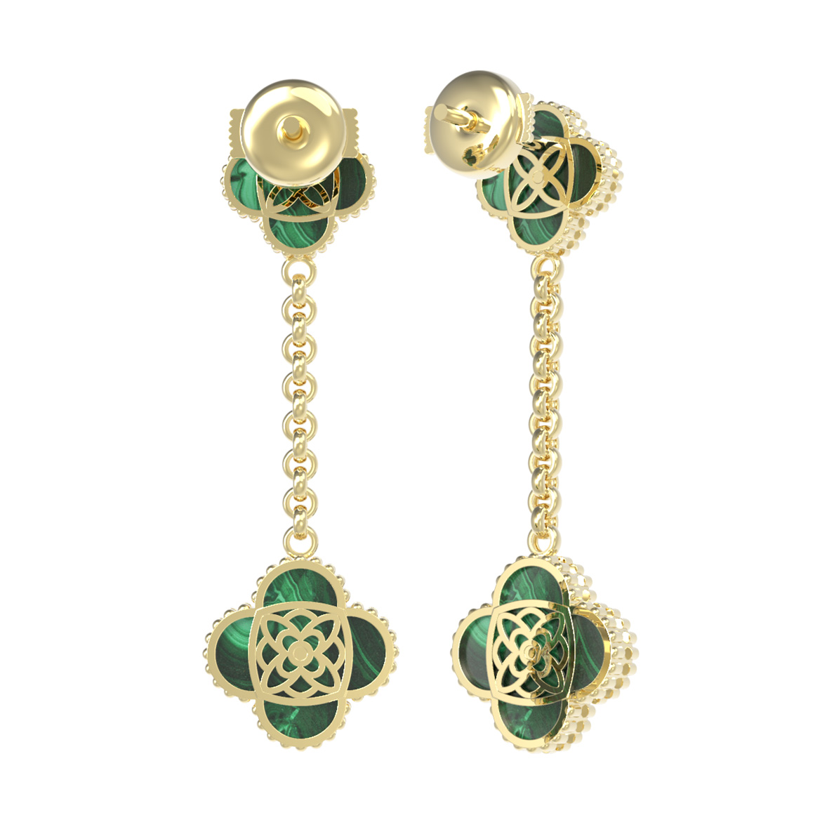 Серьги из лимонного золота c бриллиантами и малахитом