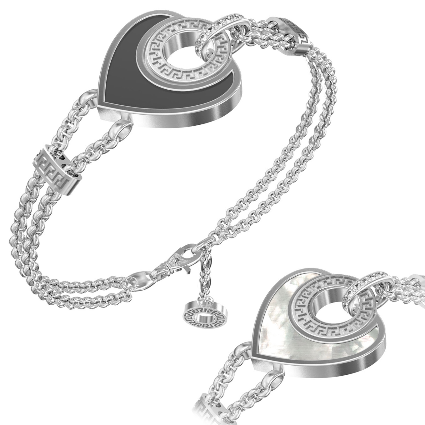 Браслет из белого золота c фианитом, ониксом и перламутром
