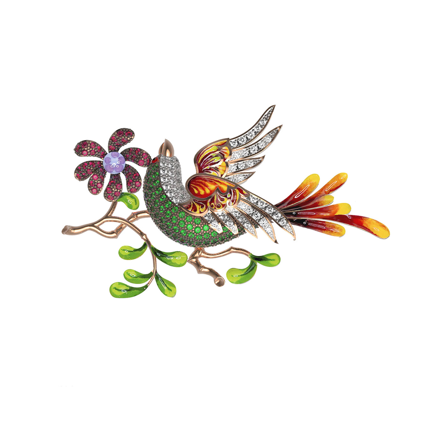 Брошь из золота c эмалью и фианитом