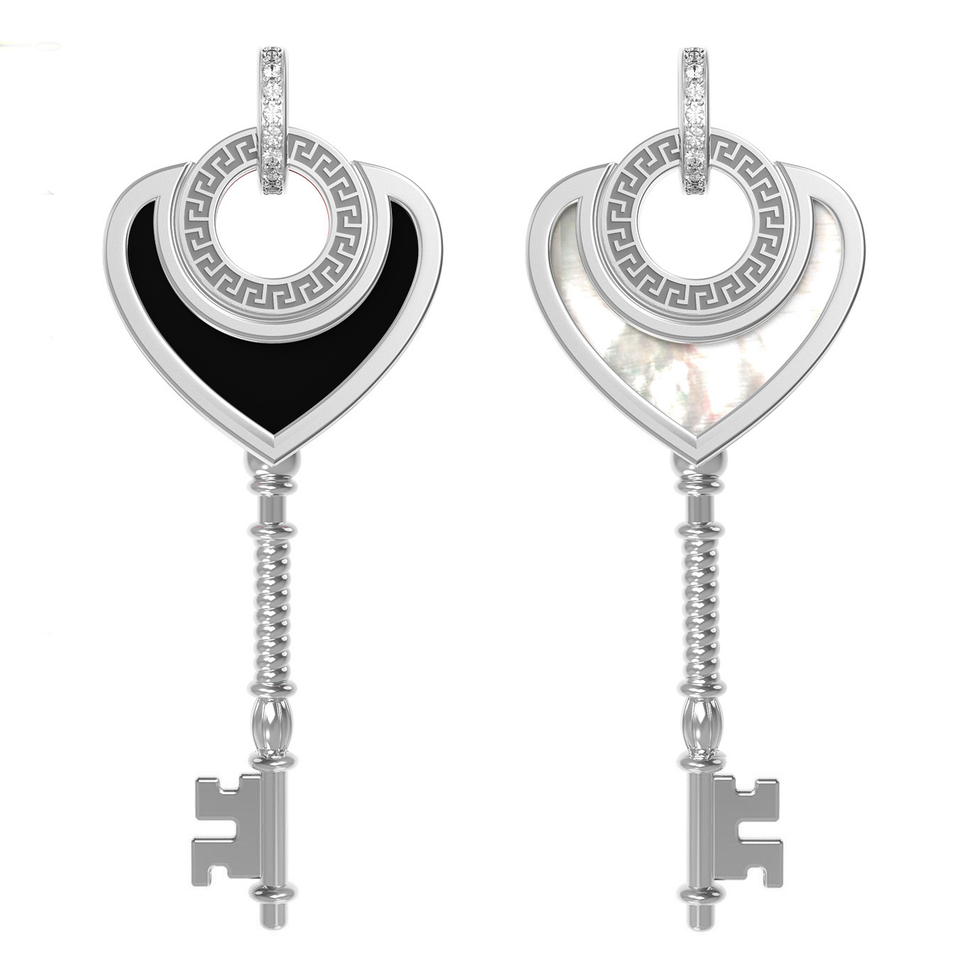 • Подвеска из белого золота c фианитом, ониксом и перламутром
