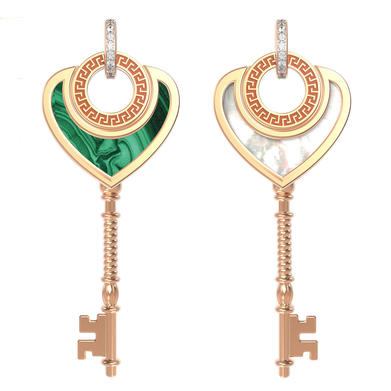 • Подвеска из золота c фианитом, малахитом и перламутром