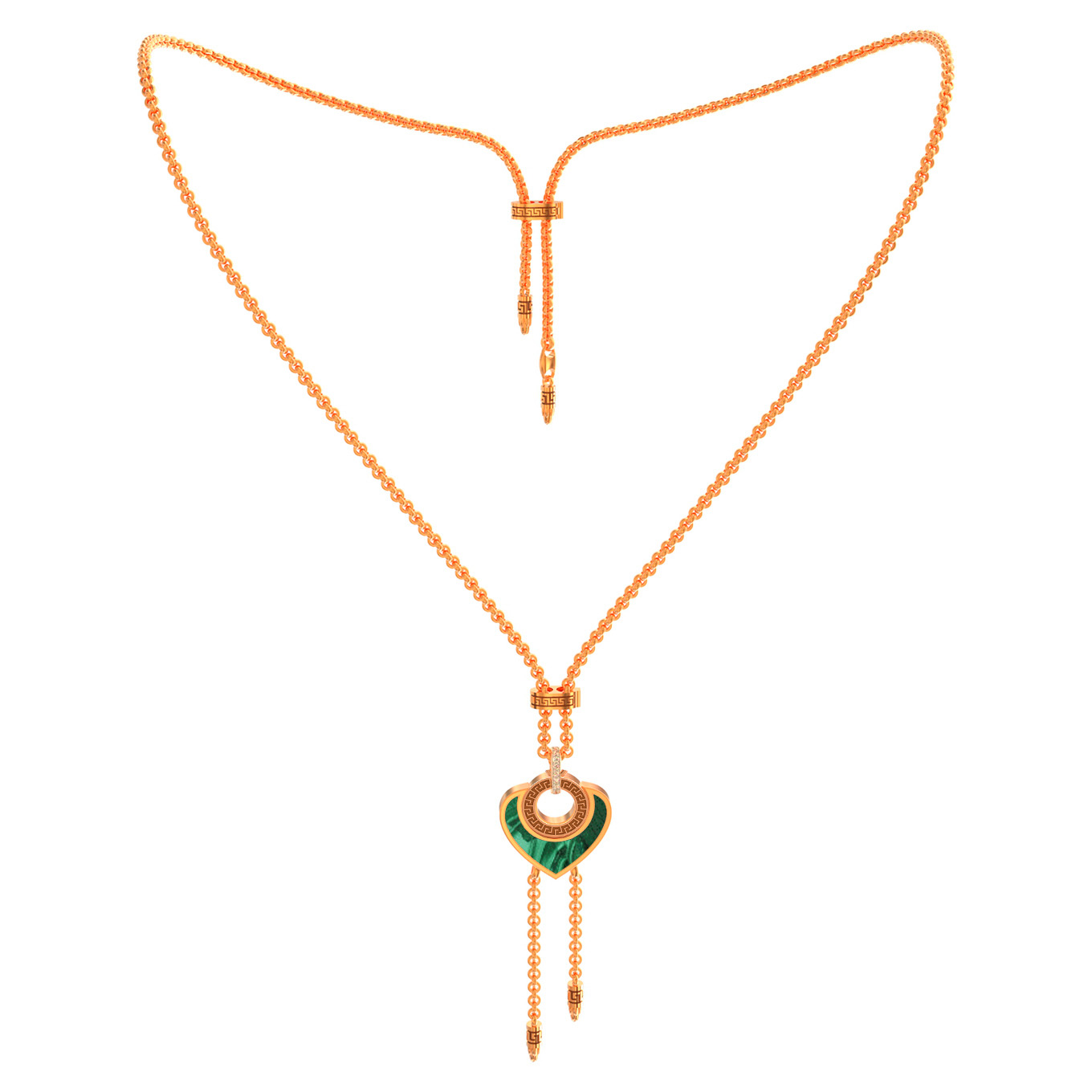 Колье из золота c фианитом, малахитом и перламутром