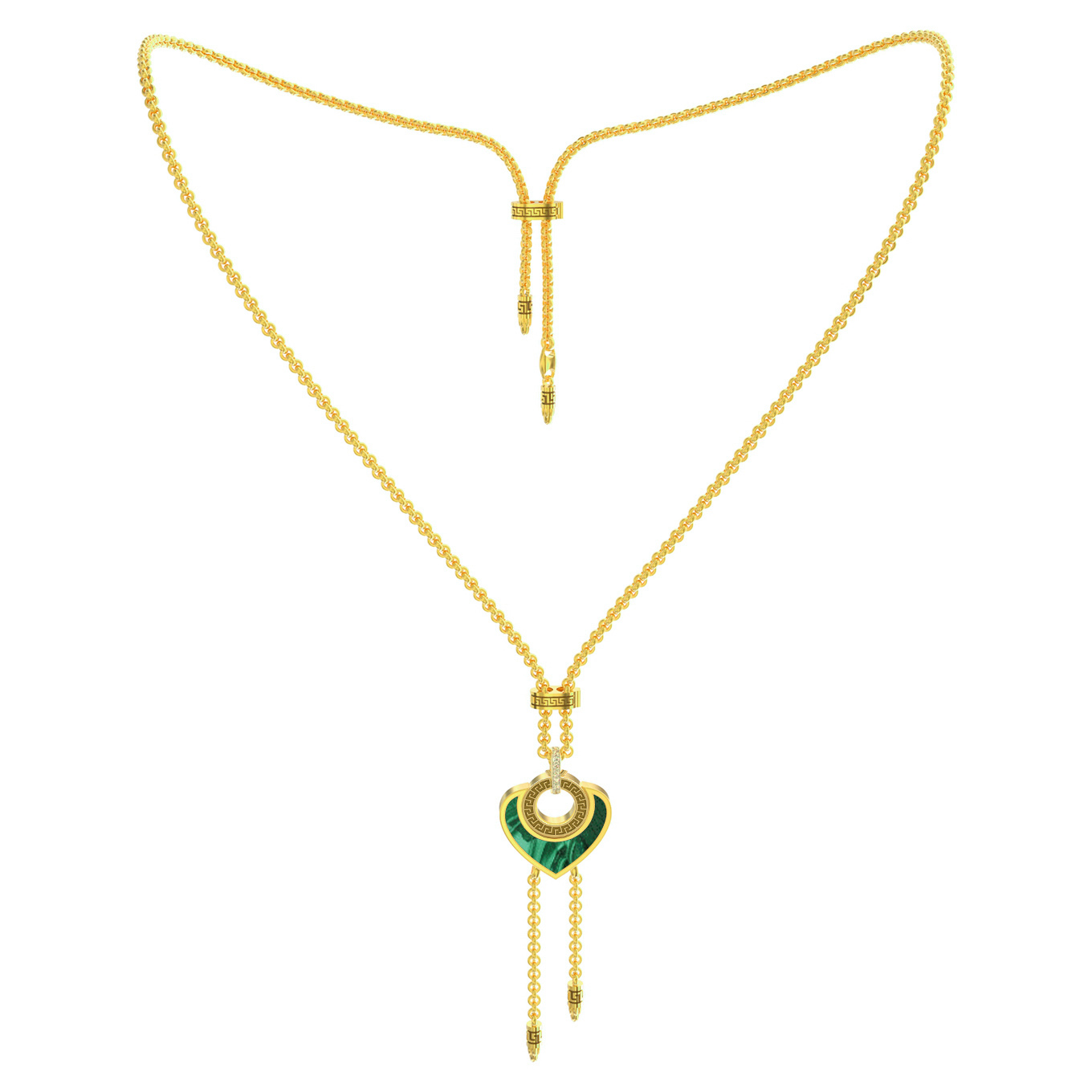 Колье из лимонного золота c фианитом, малахитом и перламутром