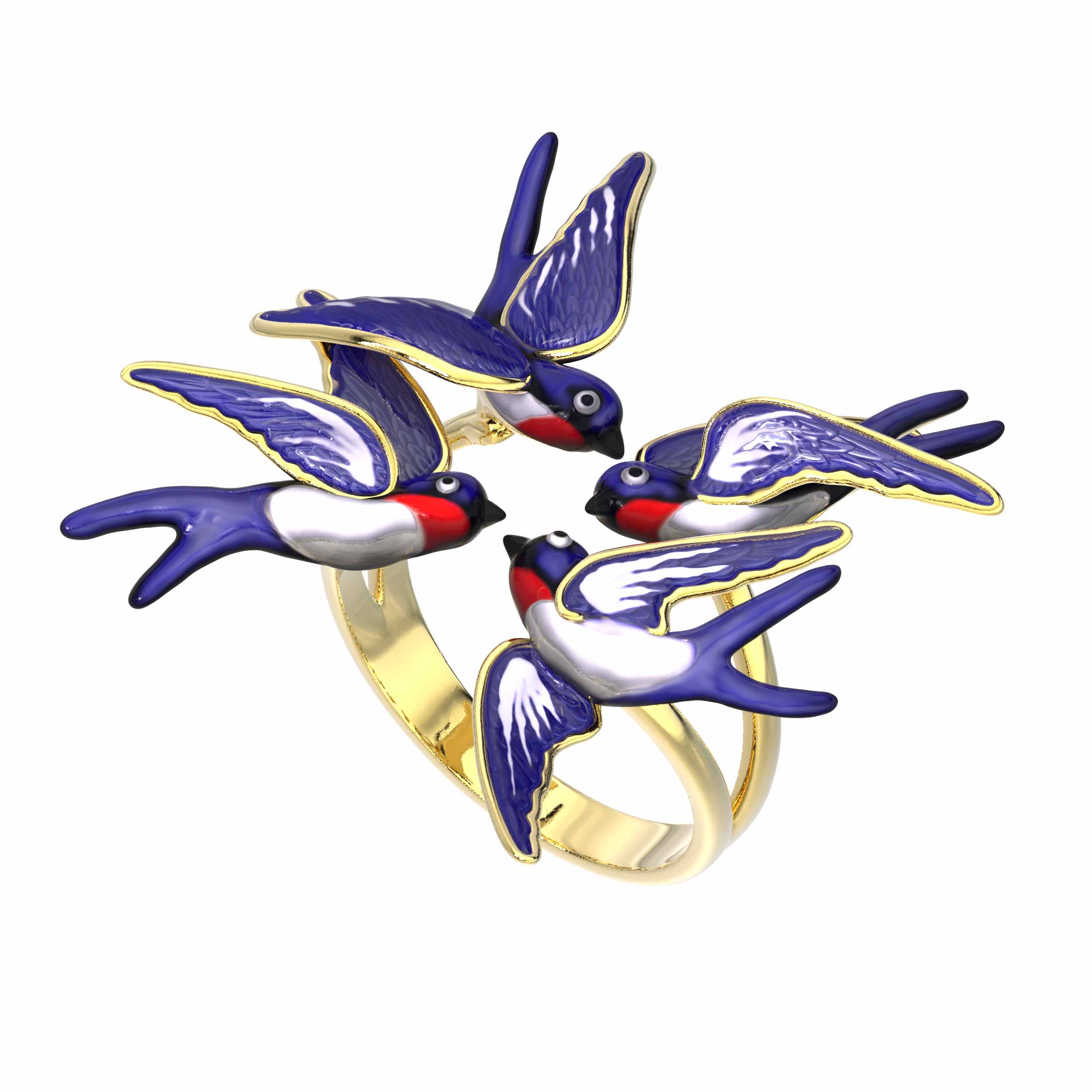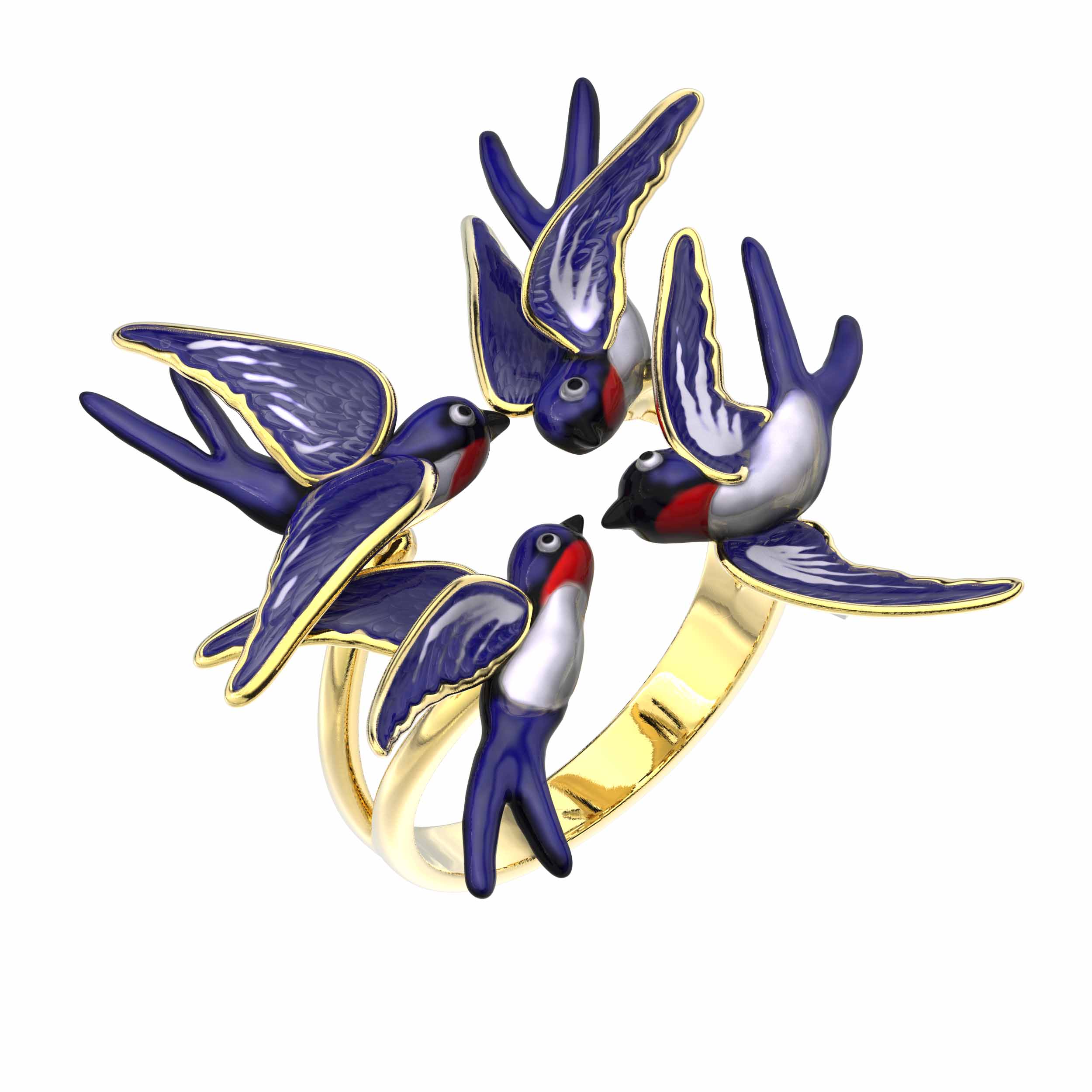 Кольцо из лимонного золота c эмалью