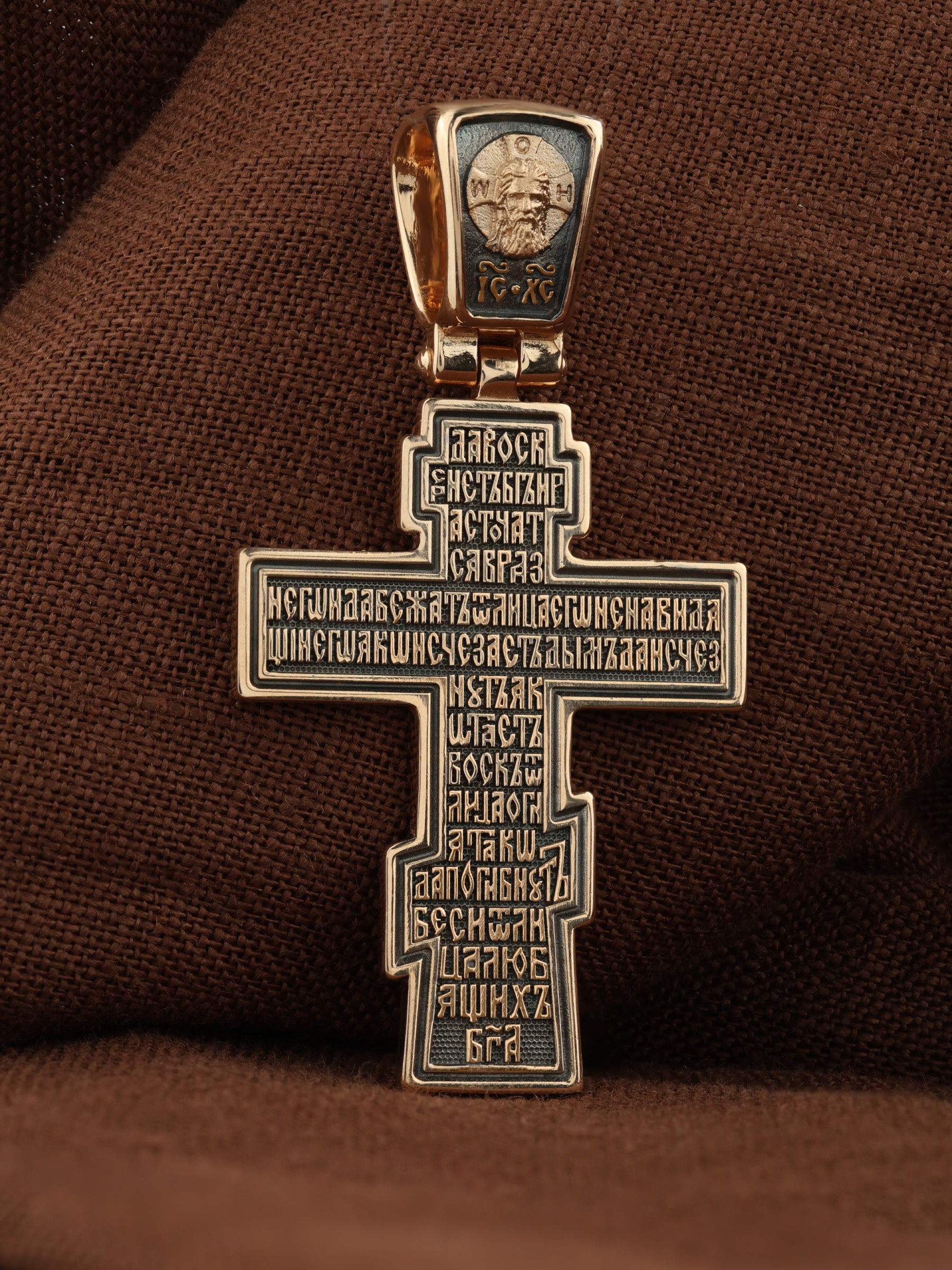 На обороте написаны начальные стихи оградительной молитвы Честному Кресту Господню. Эту молитву читают в опасности, а также носят при себе для защиты от злых сил: Да воскреснет Бог, и расточатся врази Его, и да бежат от лица Его ненавидящий Его. Яко исчезает дым, да исчезнут; яко тает воск от лица огня, тако да погибнут беси от лица любящих Бога и знаменующихся крестным знамением, и в веселии глаголющих: радуйся, Пречестный и Животворящий Кресте Господень, прогоняй бесы силою на тебе пропятаго Господа нашего Иисуса Христа, во ад сшедшаго и поправшаго силу диаволю, и даровавшаго нам тебе Крест Свой Честный на прогнание всякаго супостата. О, Пречестный и Животворящий Кресте Господень! Помогай ми со Святою Госпожею Девою Богородицею и со всеми святыми во веки. Аминь»