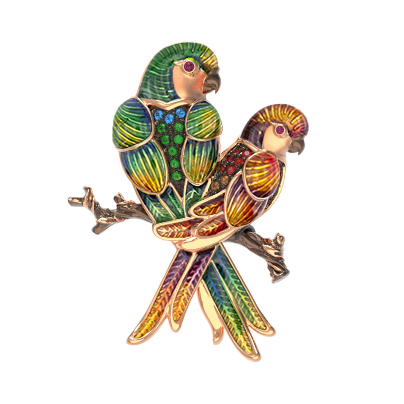 Брошь из золота c эмалью и фианитом