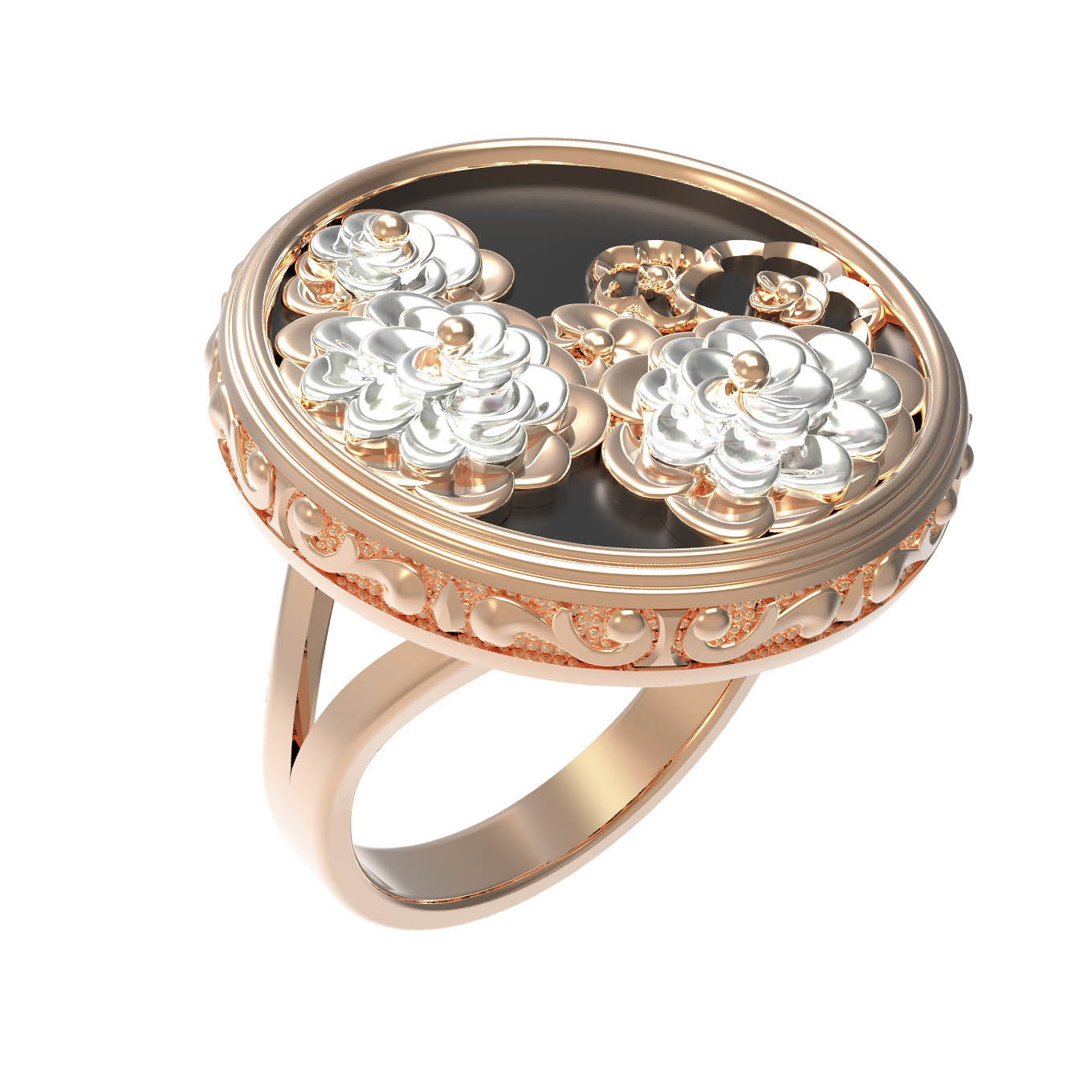 Кольцо из золота c ониксом и перламутром
