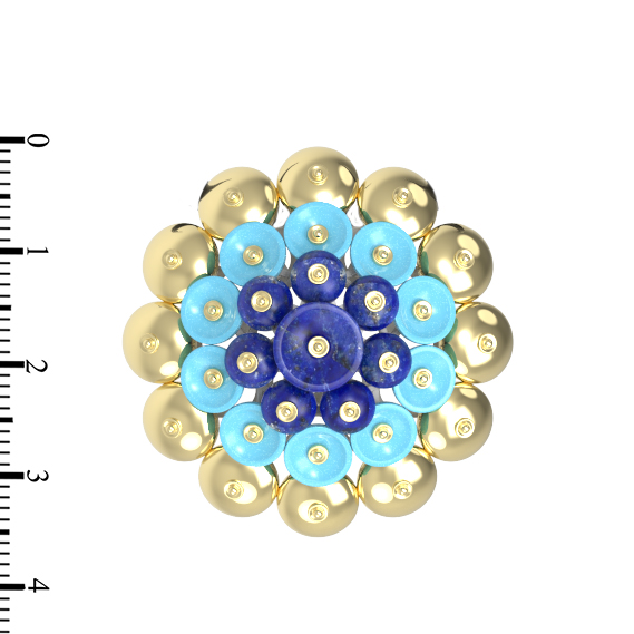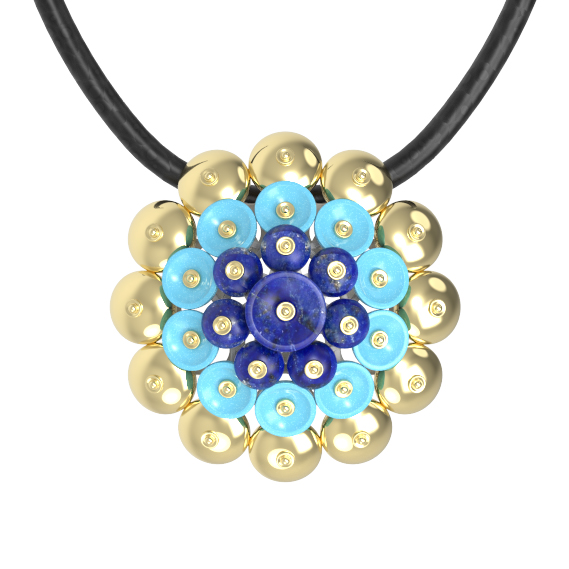 Подвеска из лимонного золота c бирюзой и лазуритом