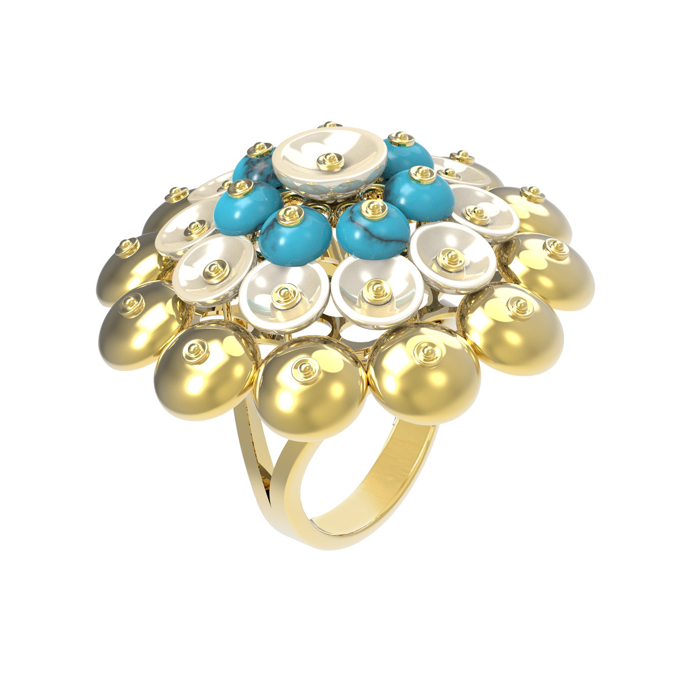 Кольцо из лимонного золота c бирюзой и перламутром
