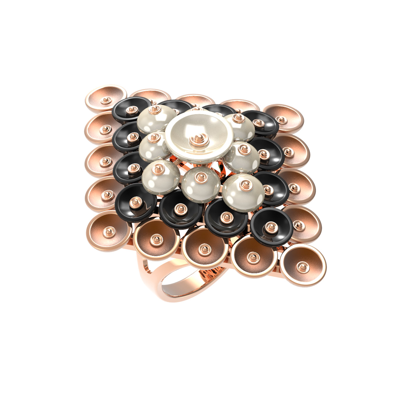Кольцо из золота c ониксом и перламутром