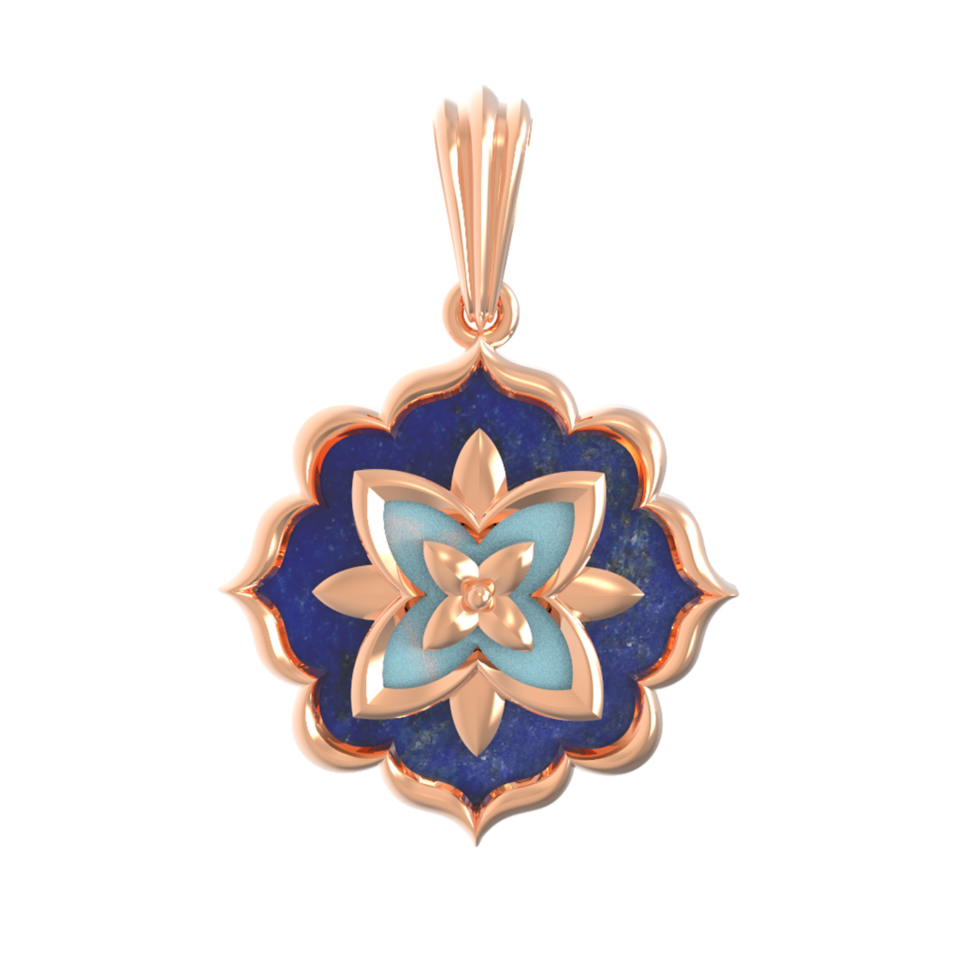 Подвеска из золота c бирюзой и лазуритом