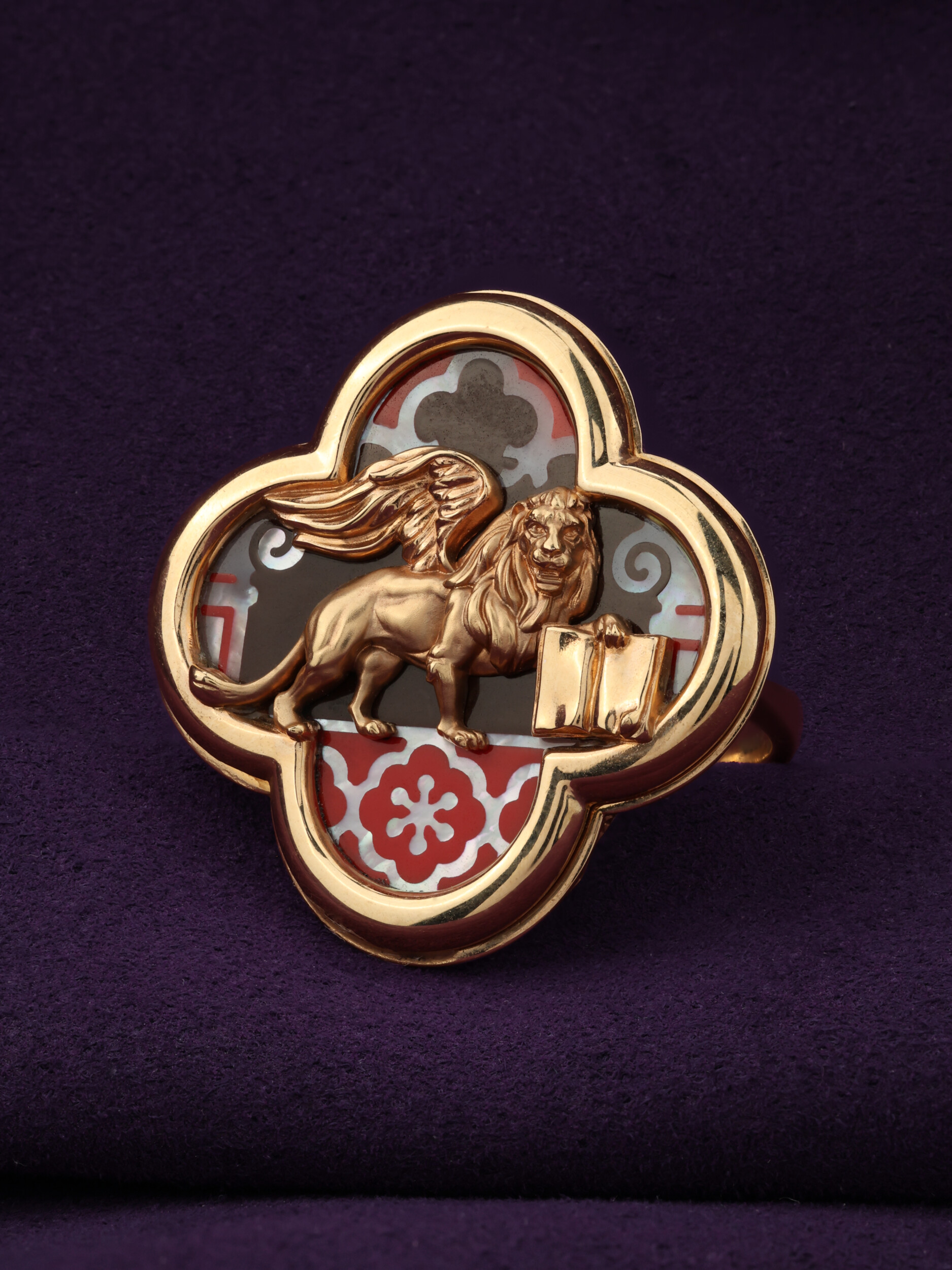 Кольцо из золота c эмалью и перламутром