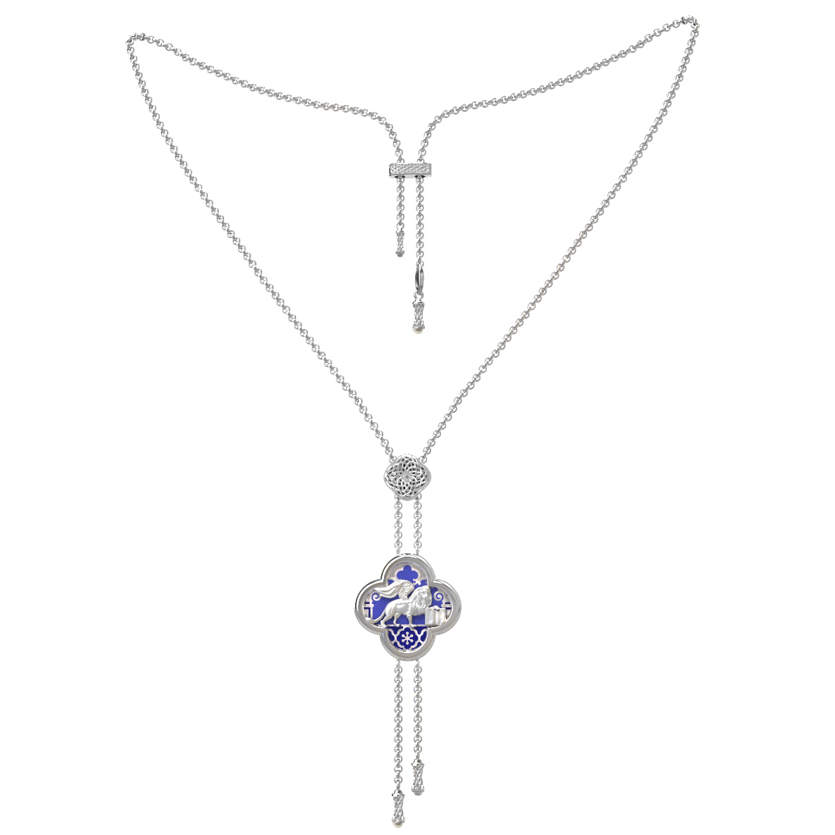 Колье из белого золота c эмалью, жемчугом и перламутром