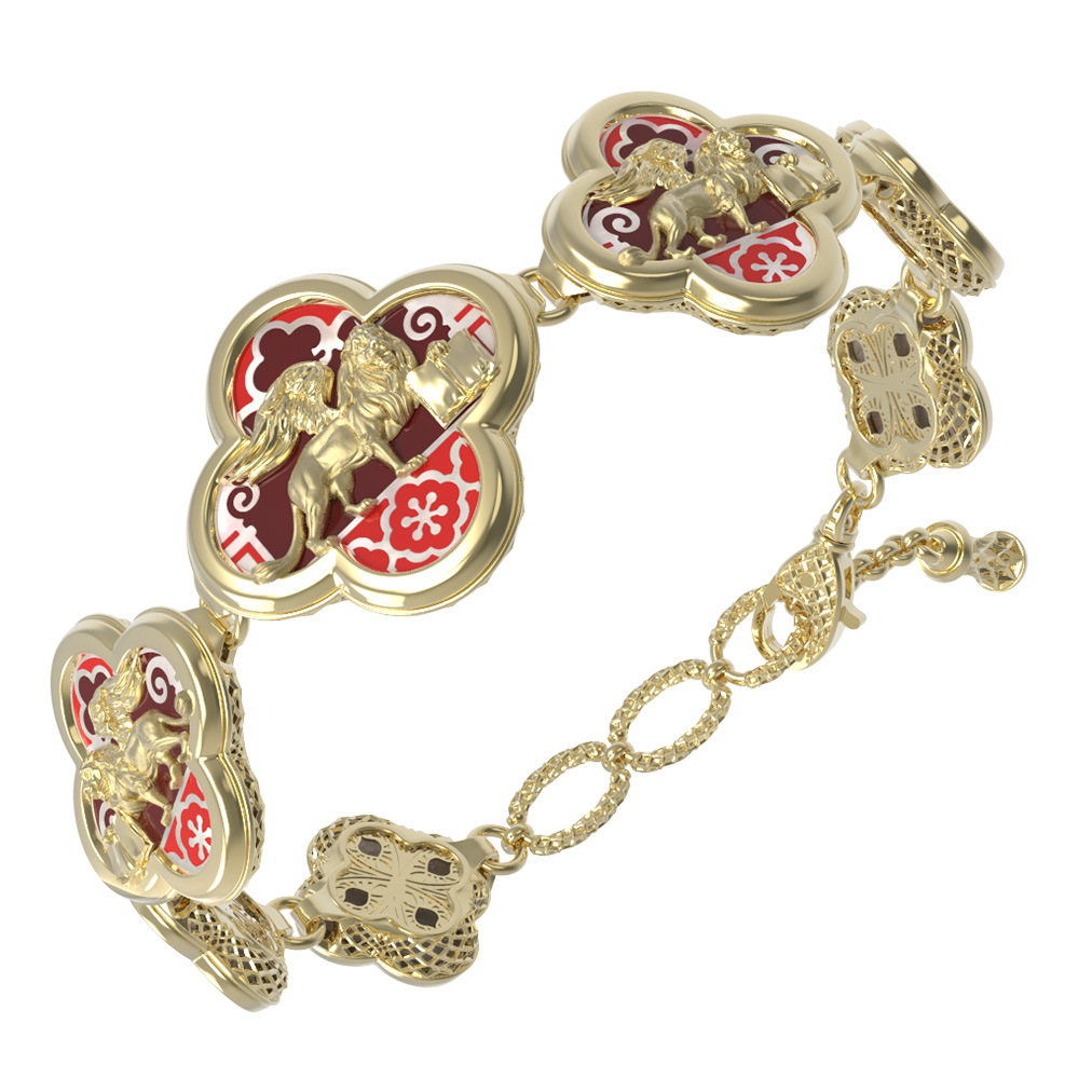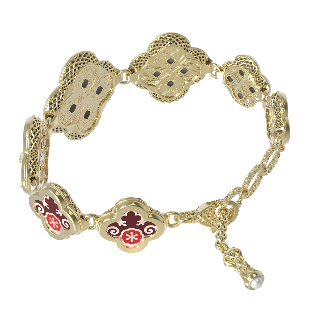 Браслет из лимонного золота c эмалью, жемчугом и перламутром