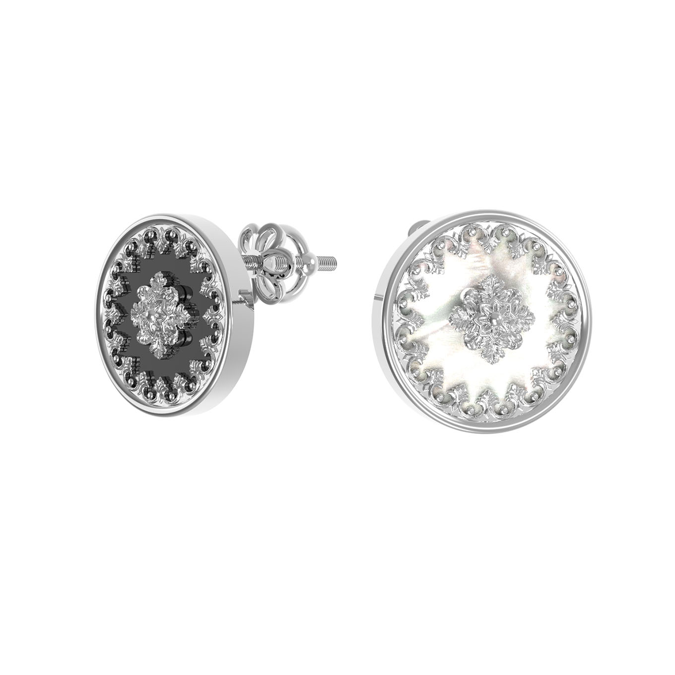 Серьги из белого золота c ониксом и перламутром