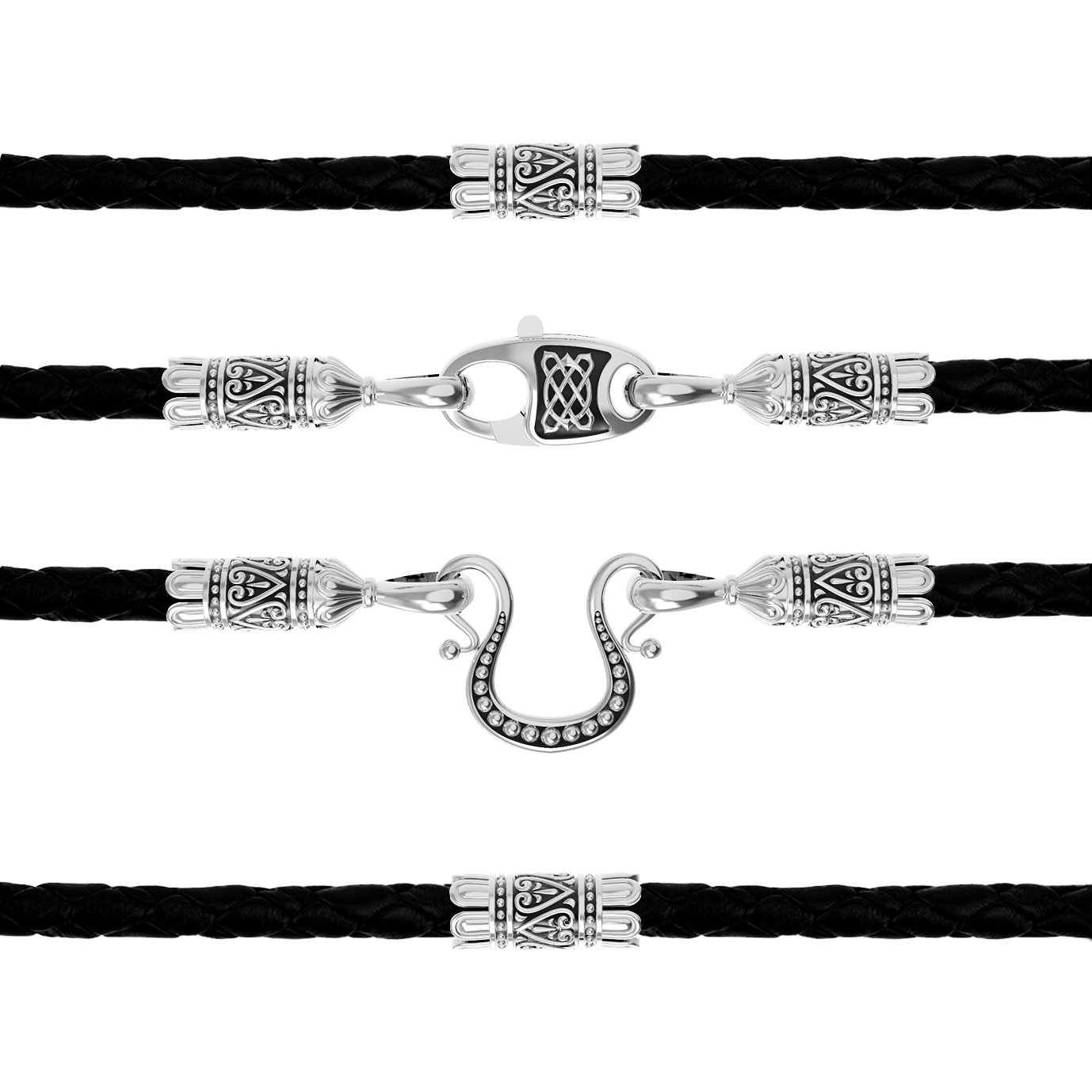 Гайтан из белого золота c кожаным шнурком