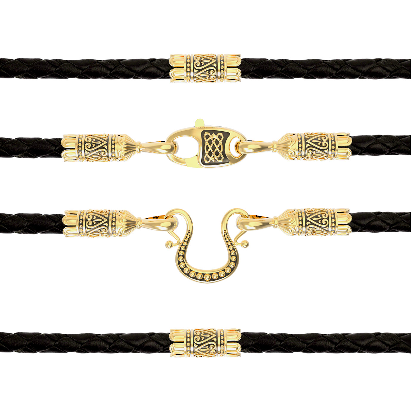 Гайтан из лимонного золота c кожаным шнурком