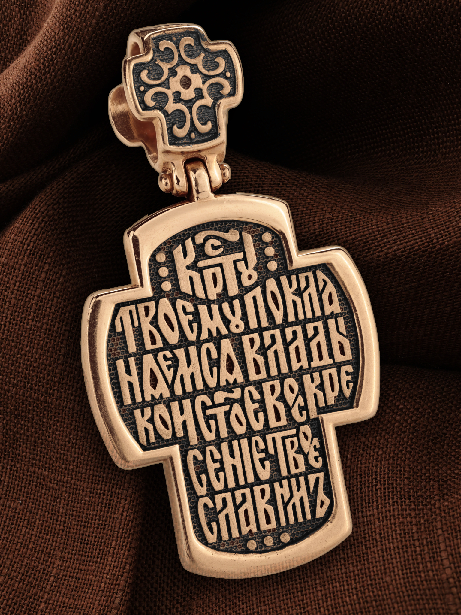 На оборотной стороне креста написана песнь: «Кресту Твоему поклоняемся, Владыко, и святое Воскресение Твое славим»