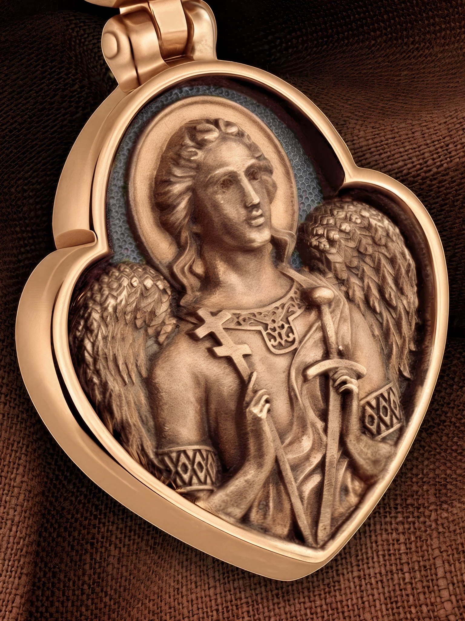 На оборотной стороне образка написана молитва: «Ангеле Божий, Хранитель мой Святый, покрой меня твоим покровом от стрел демона, от глаз обольстителя и сохрани мое сердце в ангельской чистоте. Аминь».