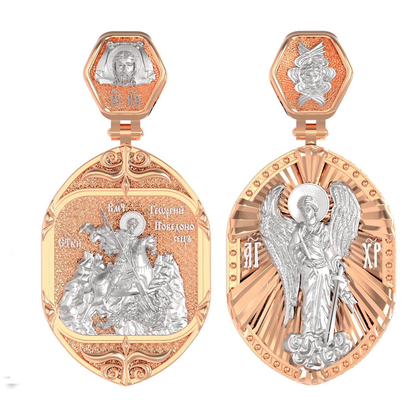 Основой композиции лицевой стороны является изображение Святого Георгия Победоносца.