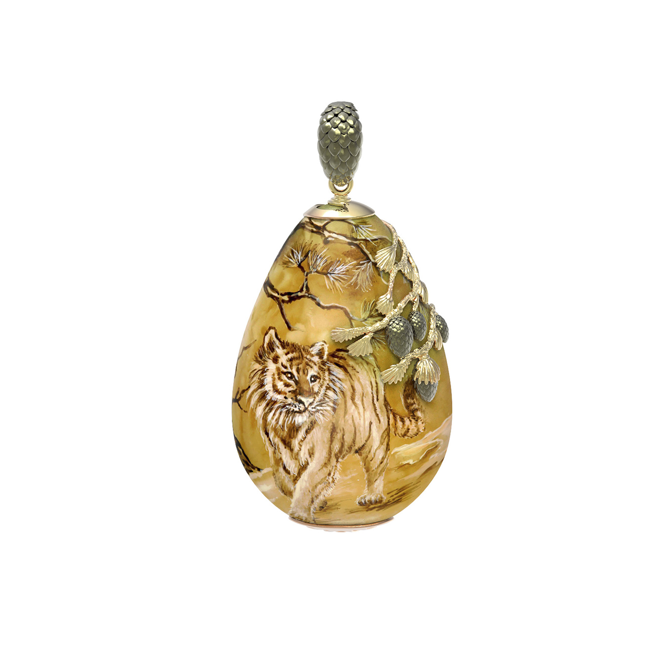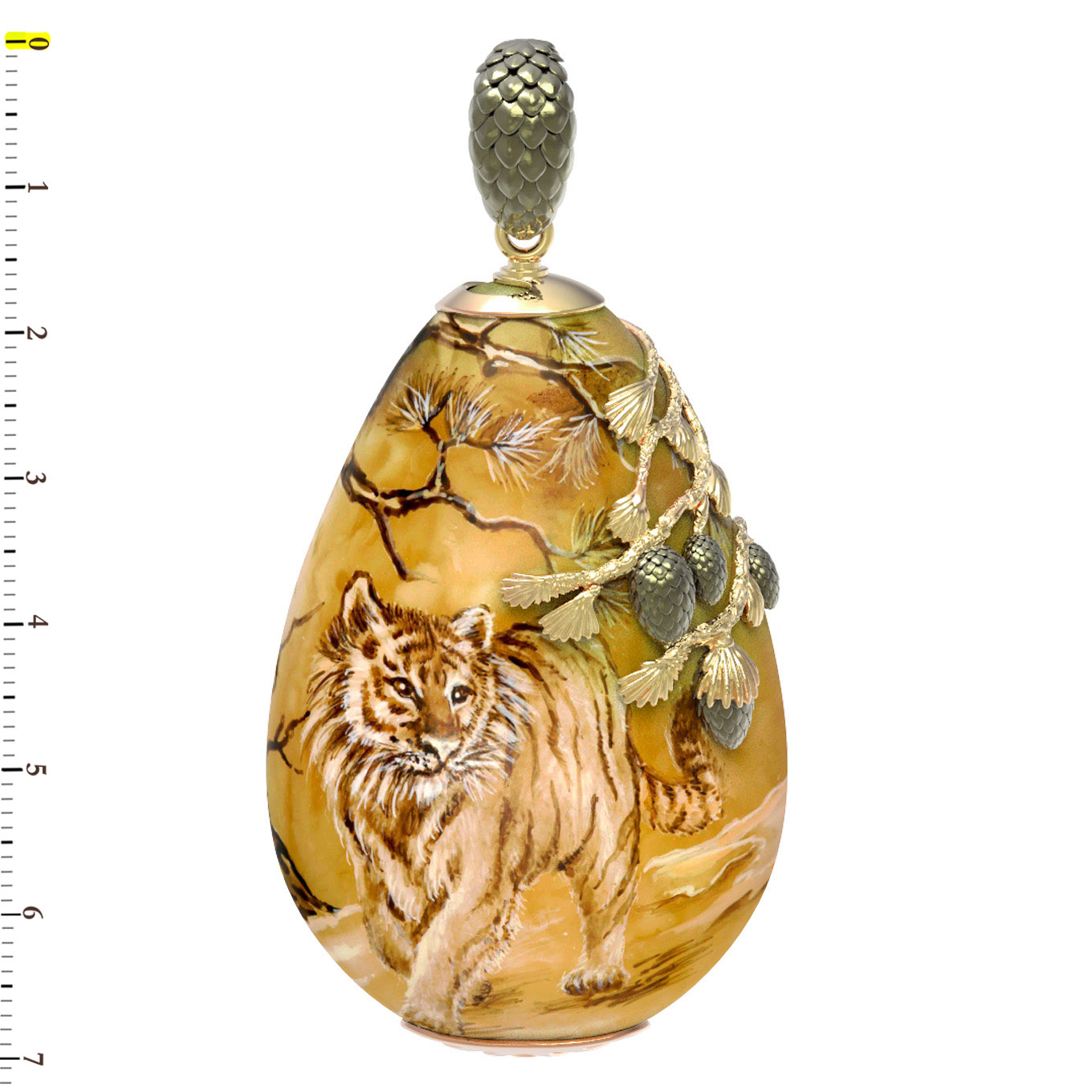 Подвеска из лимонного золота c росписным янтарём
