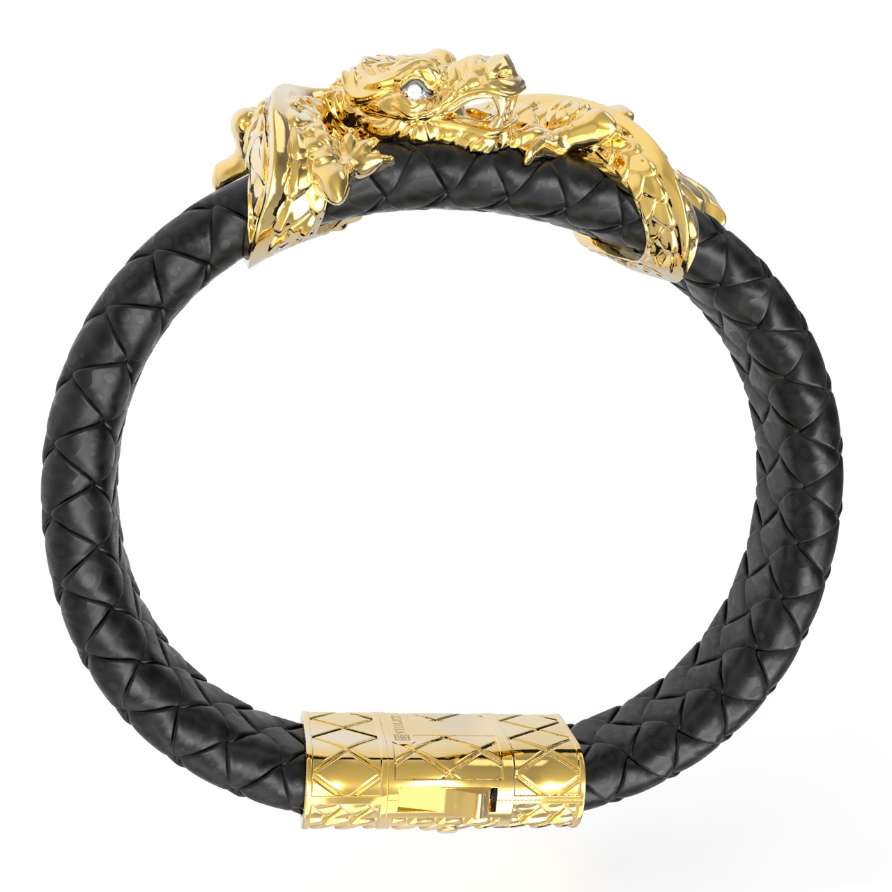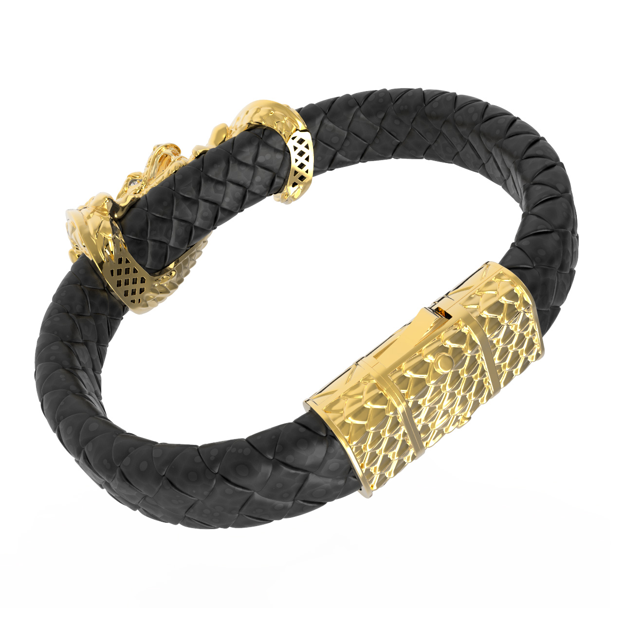 Браслет из лимонного золота c бриллиантами и кожаным шнурком