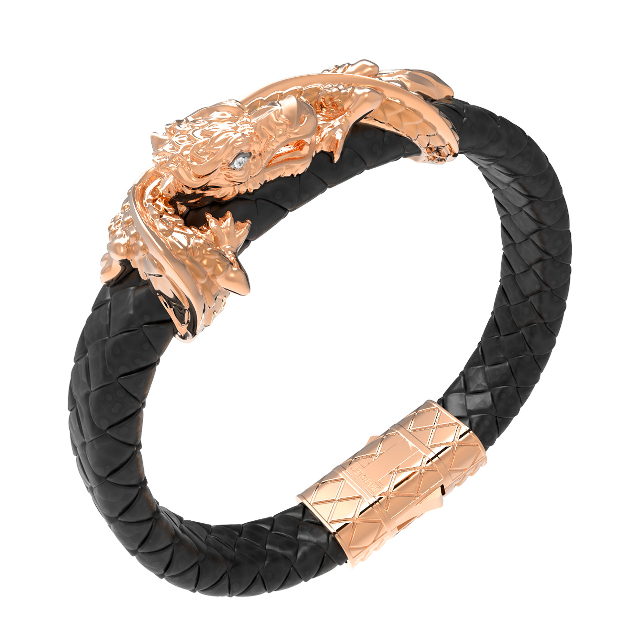 Браслет из золота c бриллиантами и кожаным шнурком