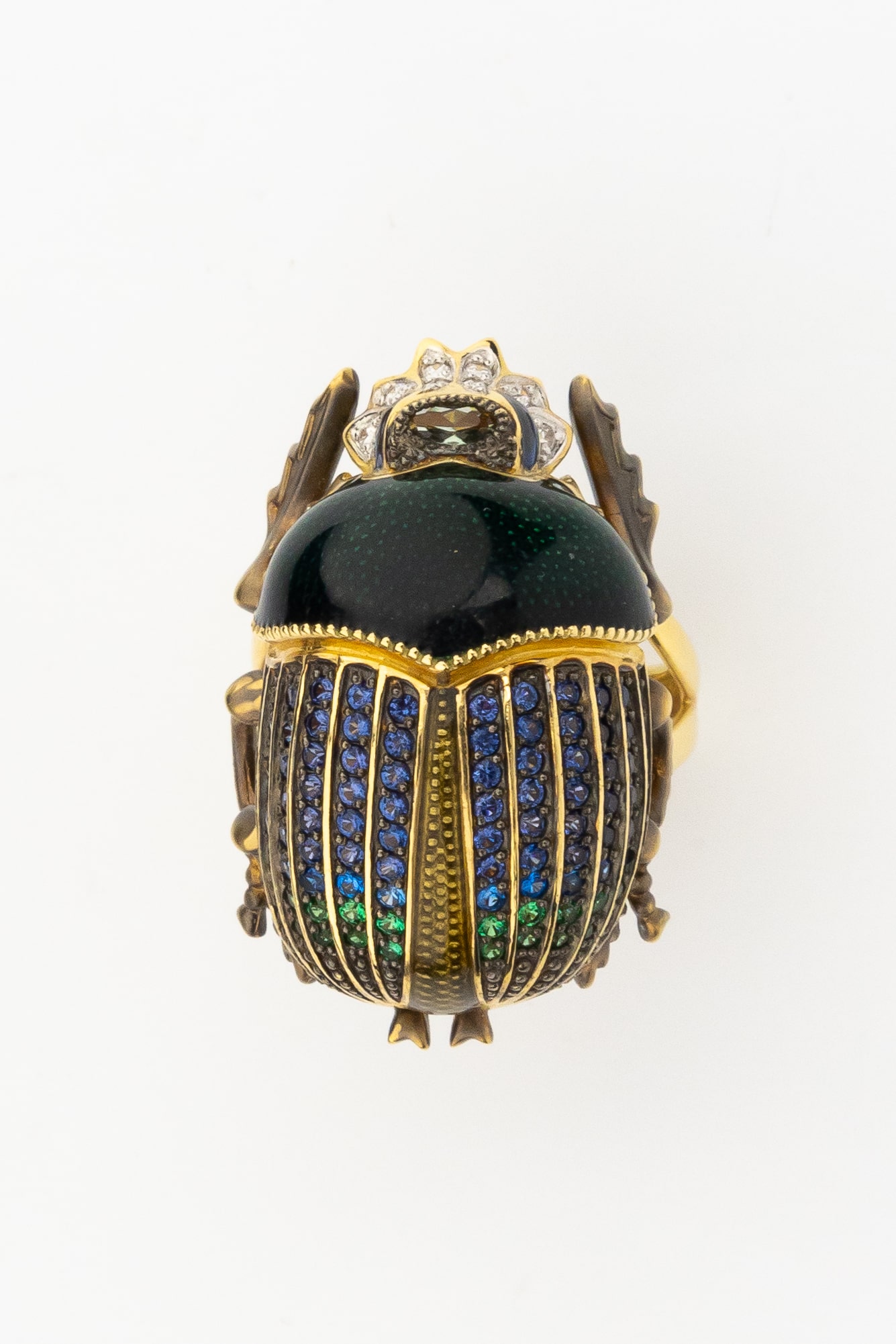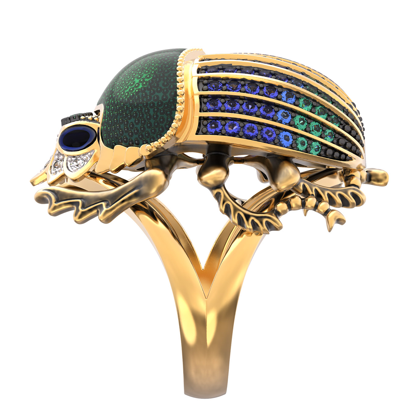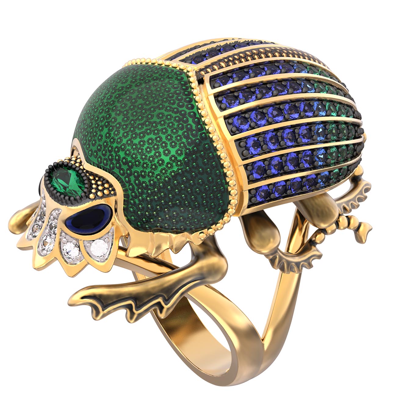 Кольцо из лимонного золота c эмалью, фианитом и турмалином