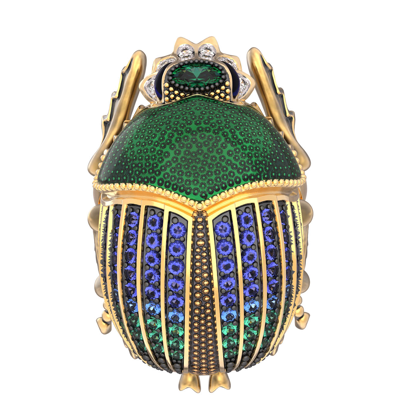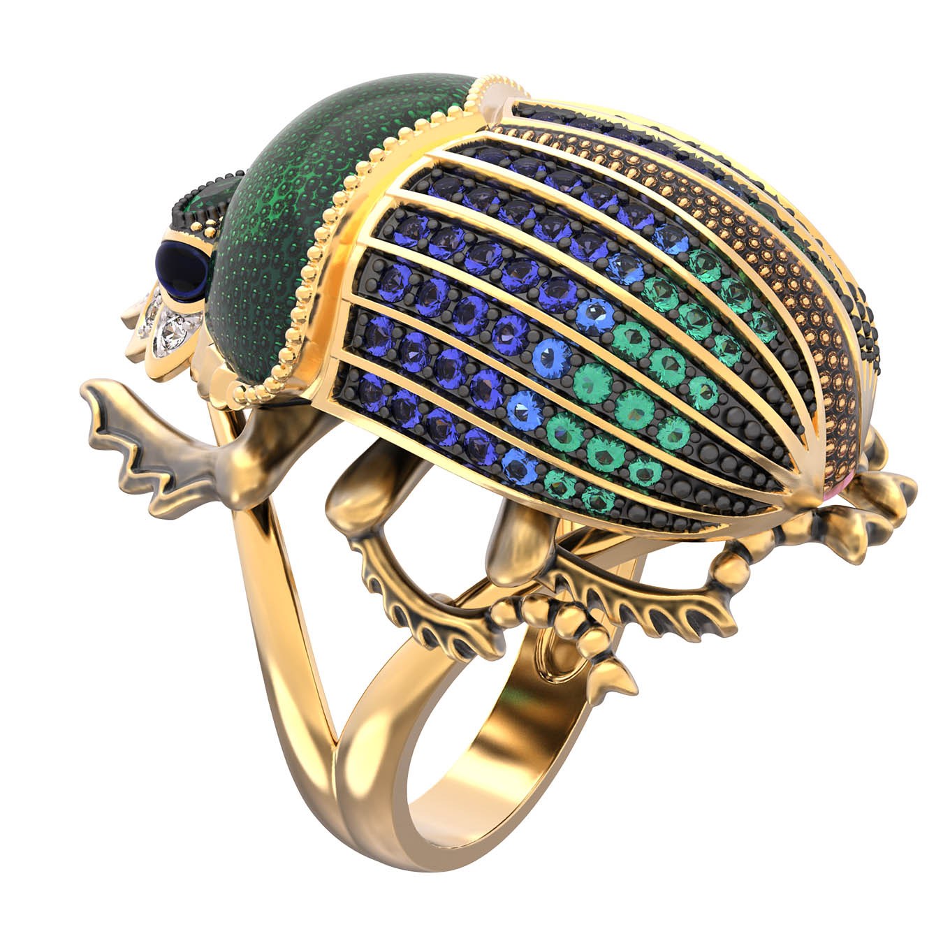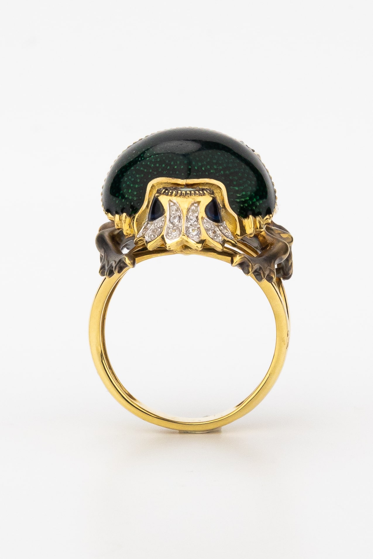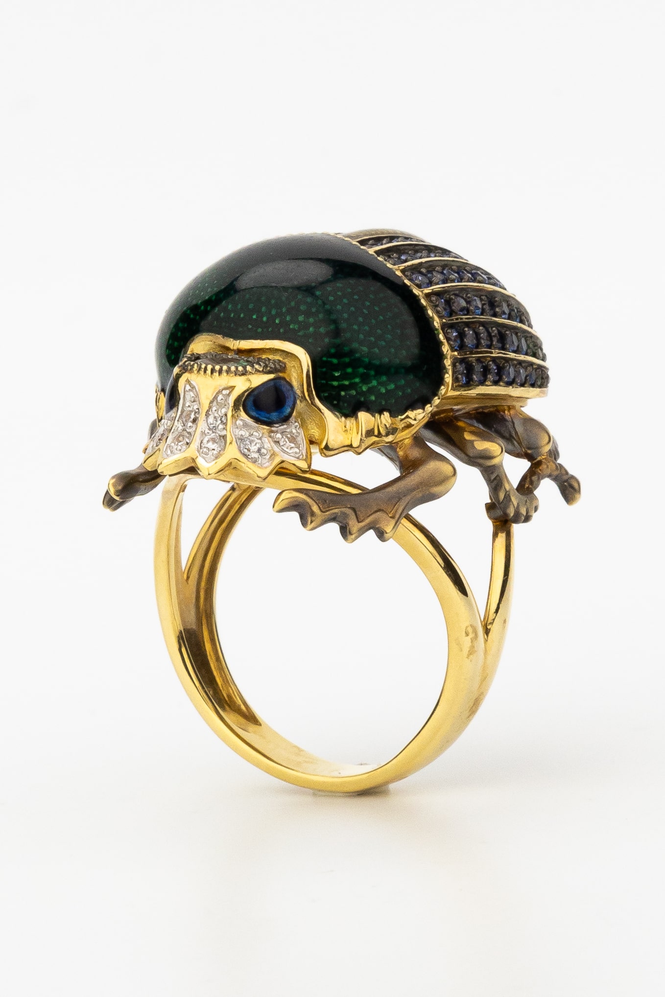 Кольцо из лимонного золота c эмалью, фианитом и турмалином