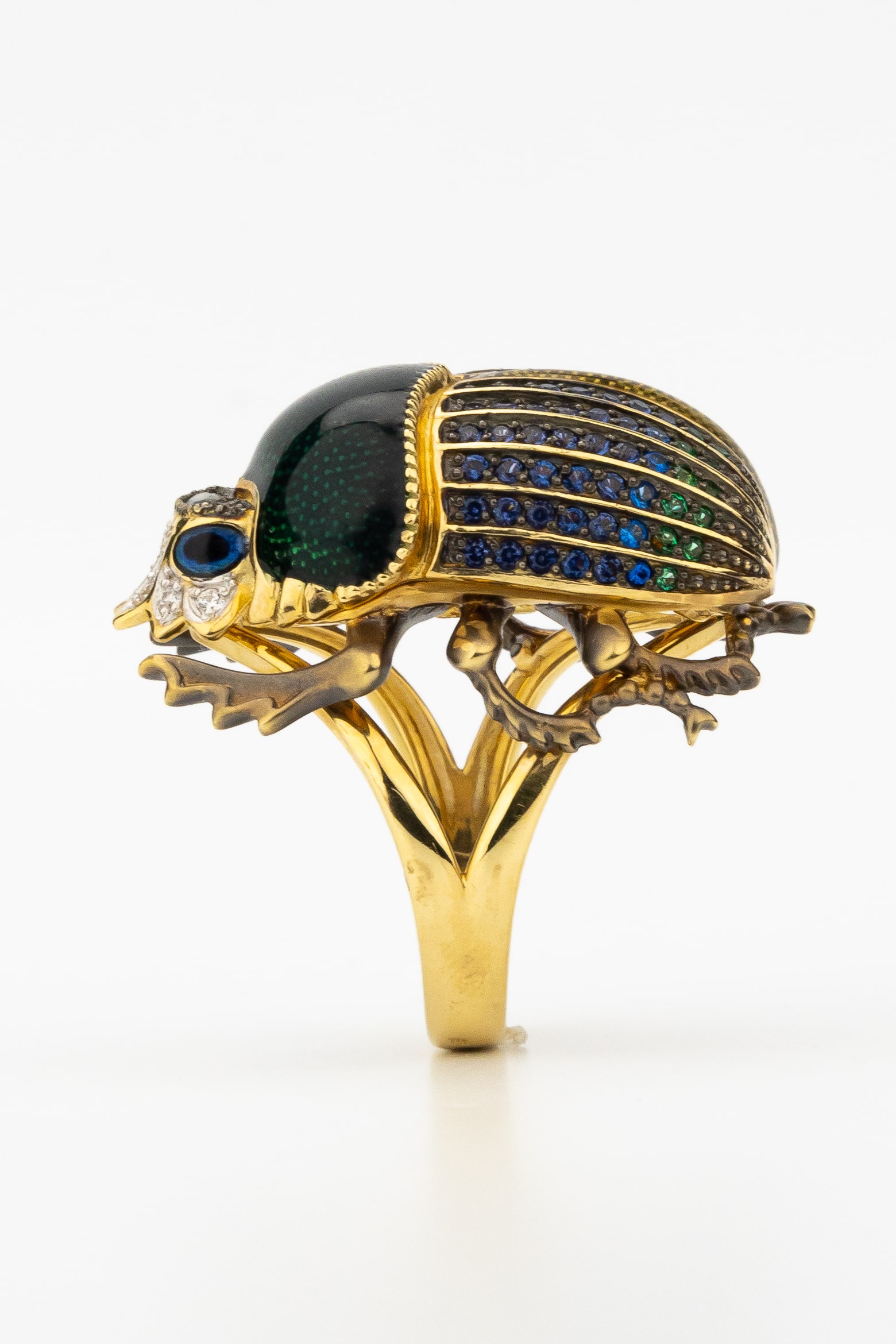 Кольцо из лимонного золота c эмалью, фианитом и турмалином