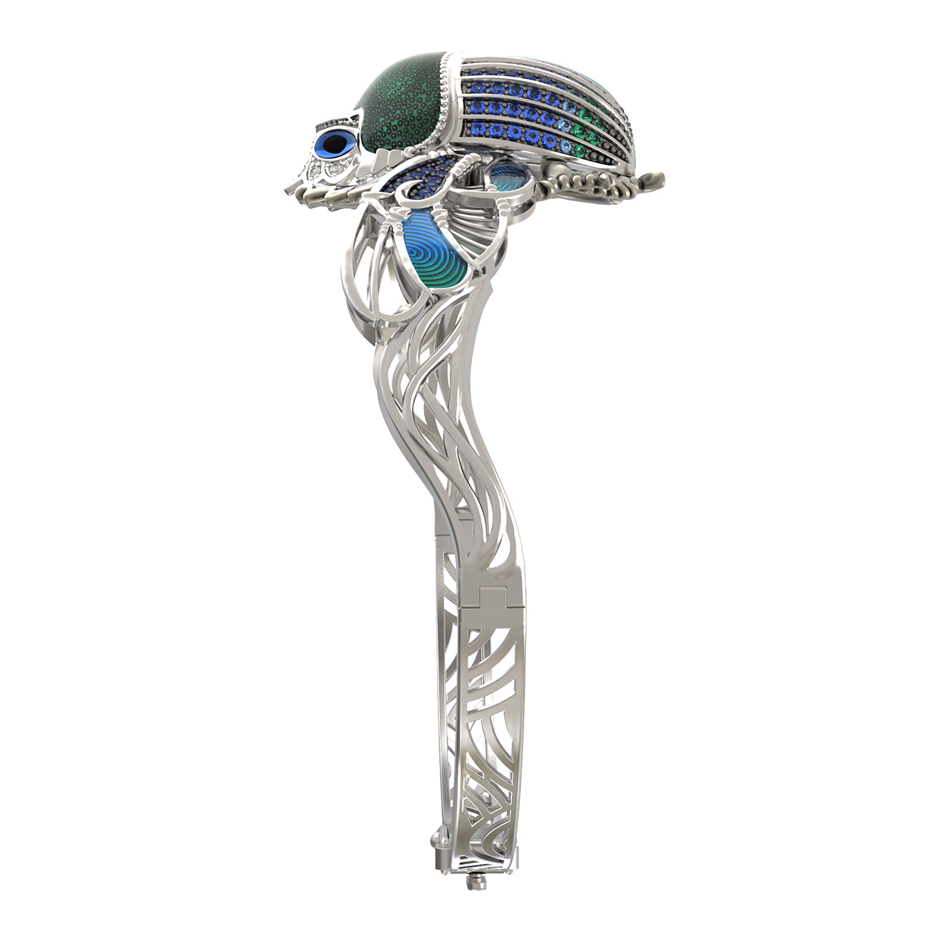 Браслет из белого золота c эмалью, фианитом, сапфиром и эмалью