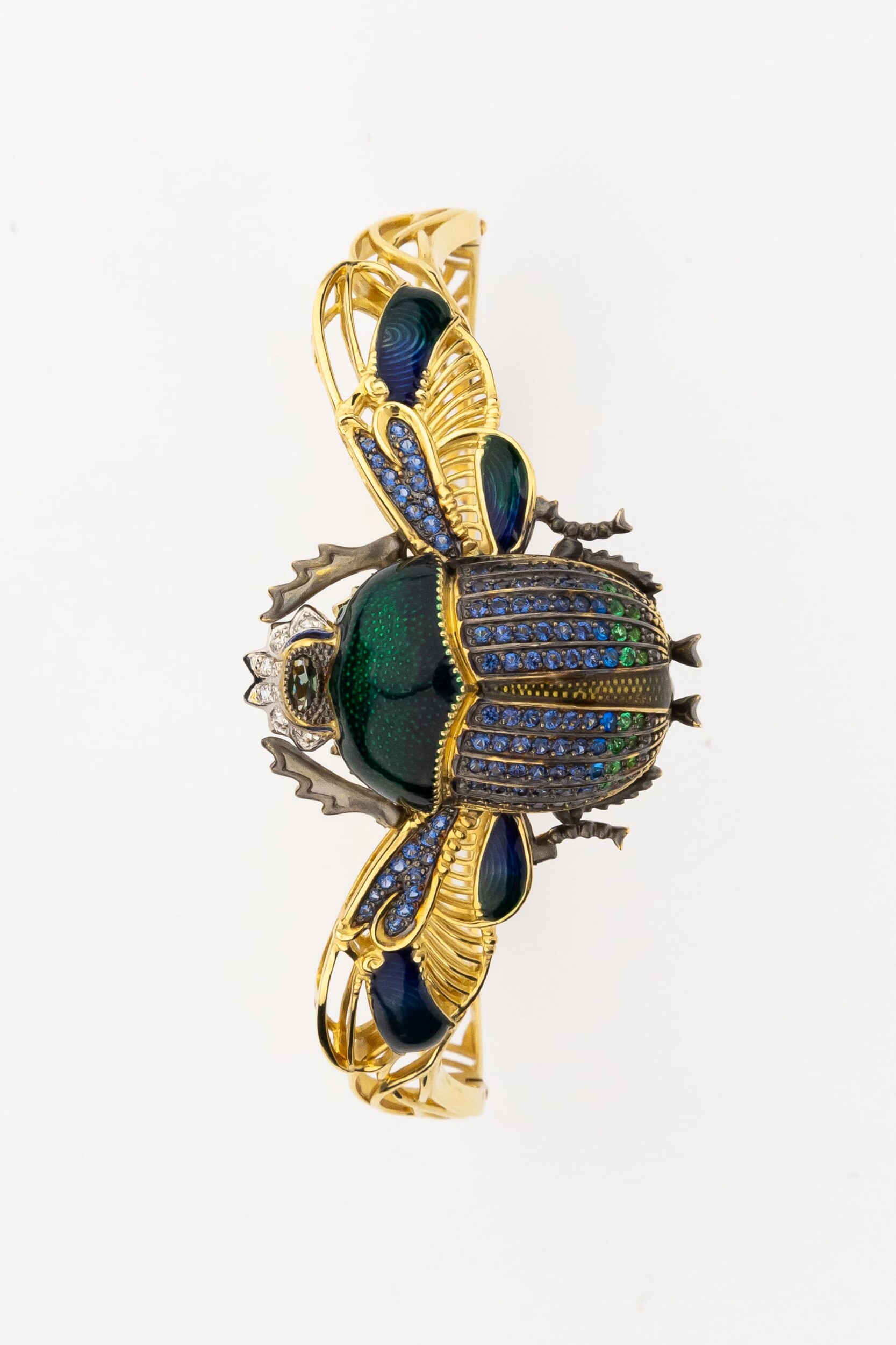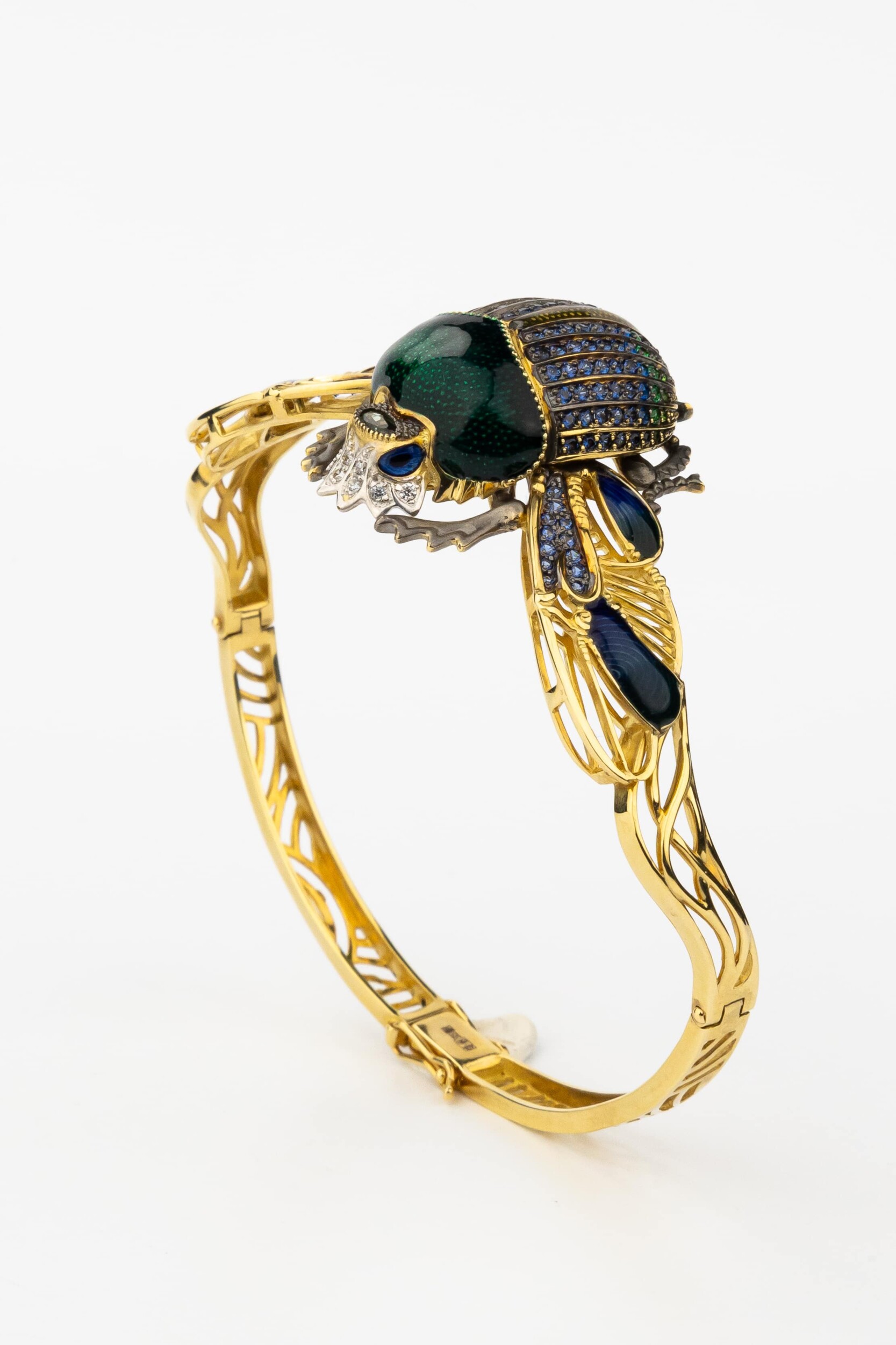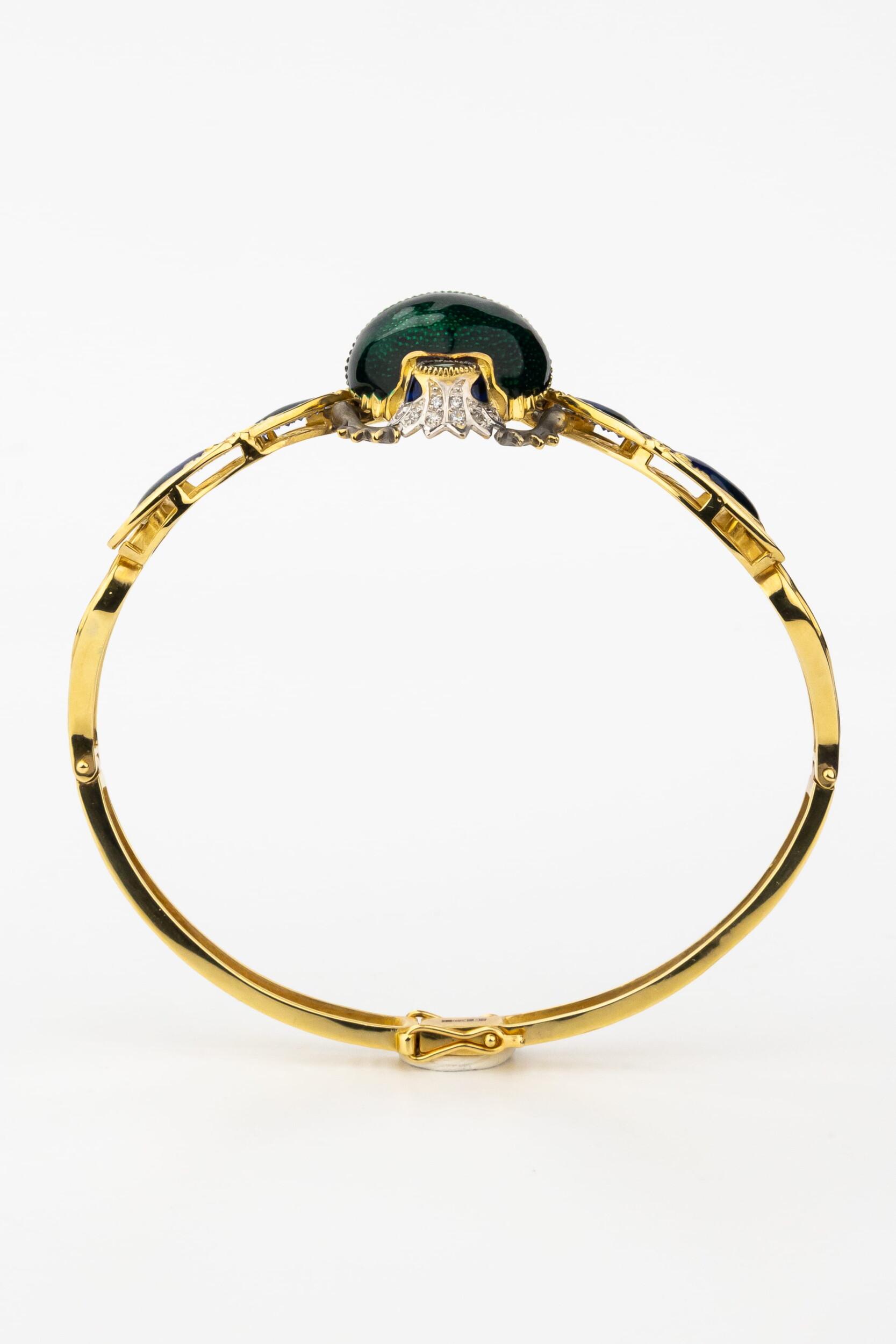 Браслет из лимонного золота c эмалью, фианитом, турмалином и эмалью