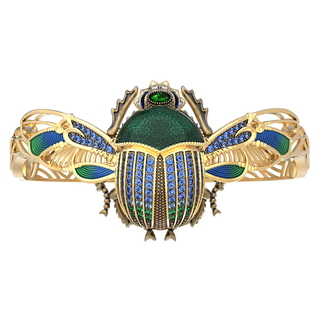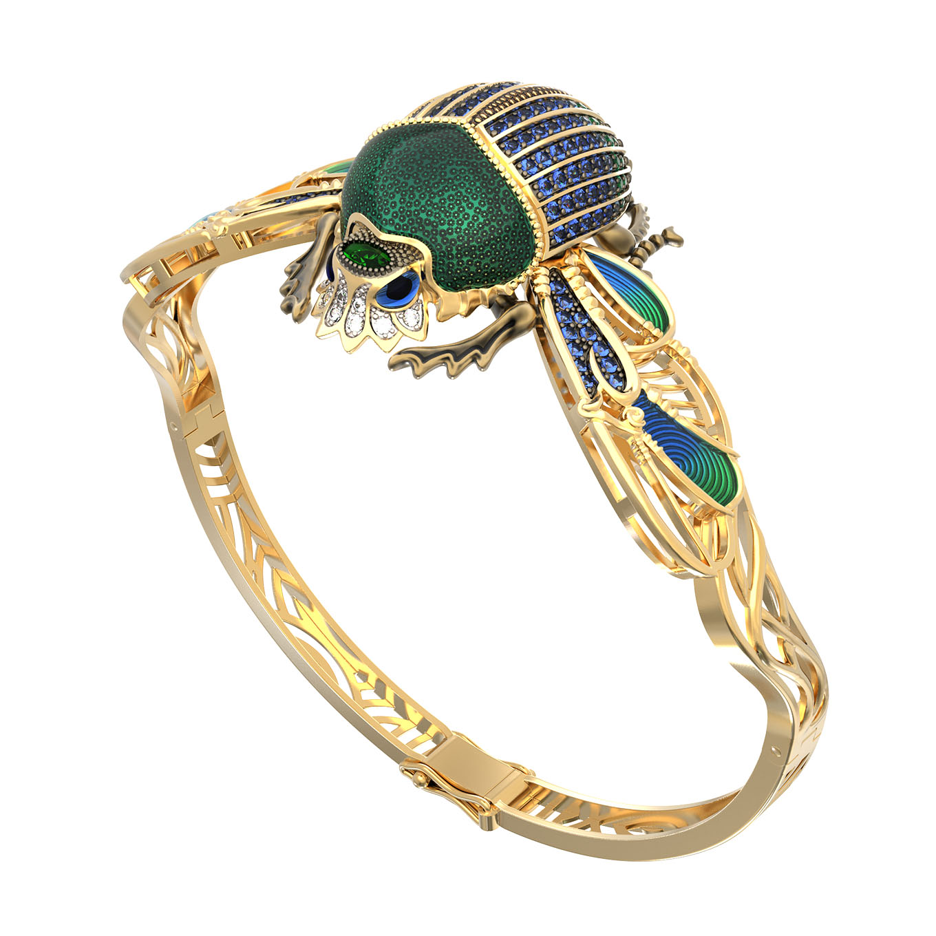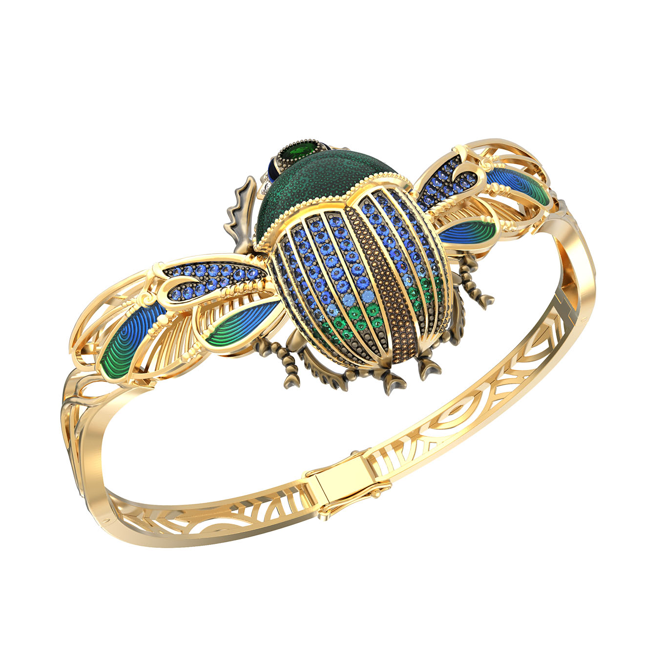 Браслет из лимонного золота c эмалью, фианитом, турмалином и эмалью