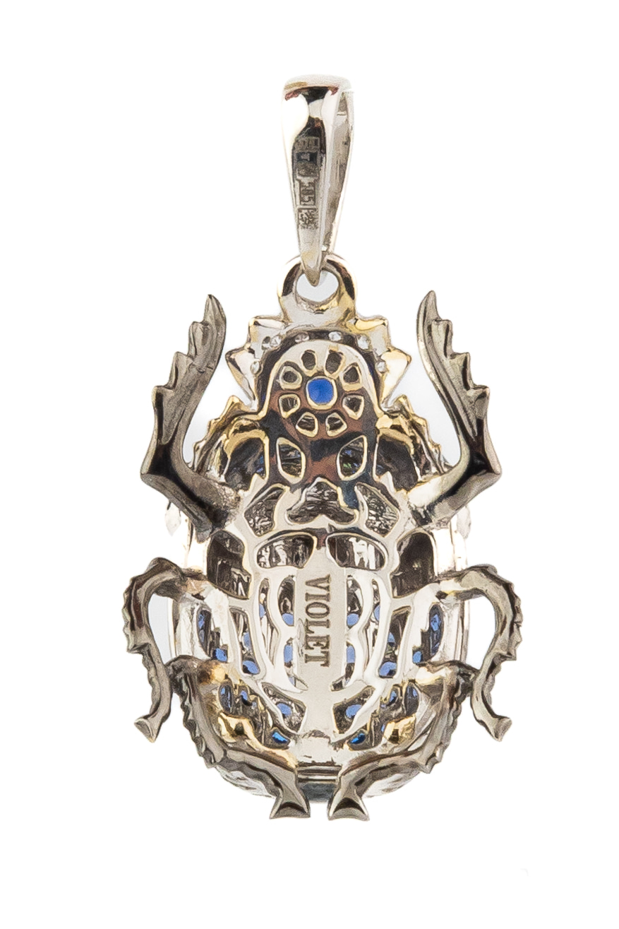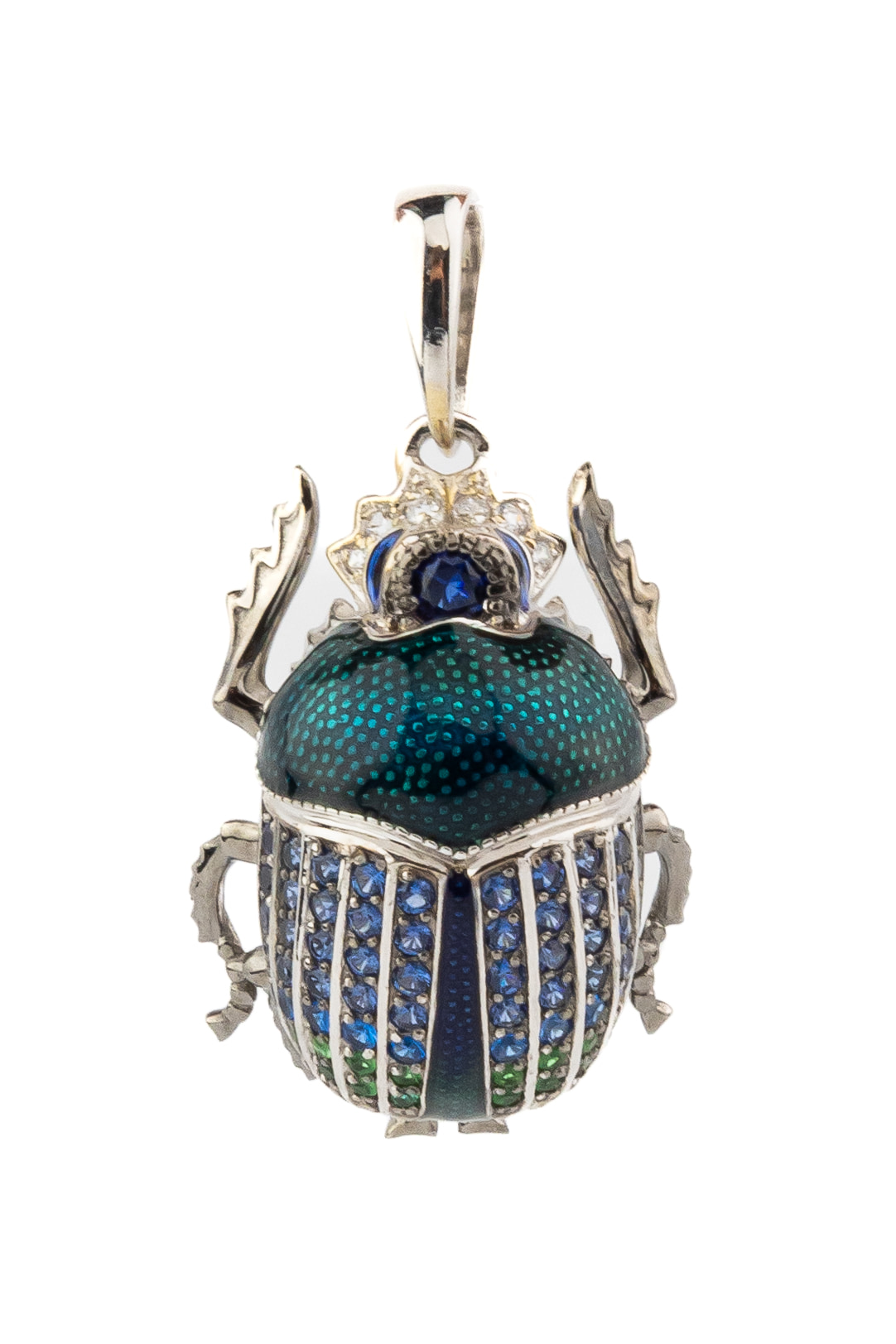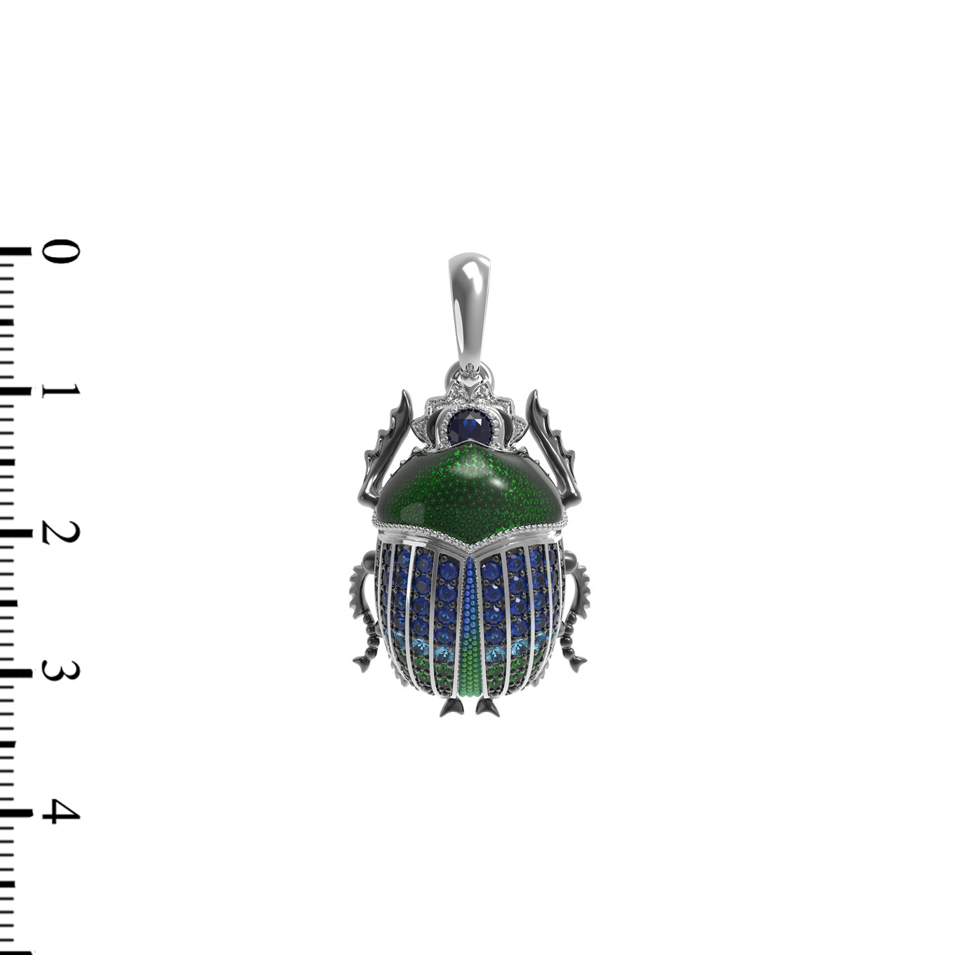 Подвеска из белого золота c эмалью, фианитом и сапфиром