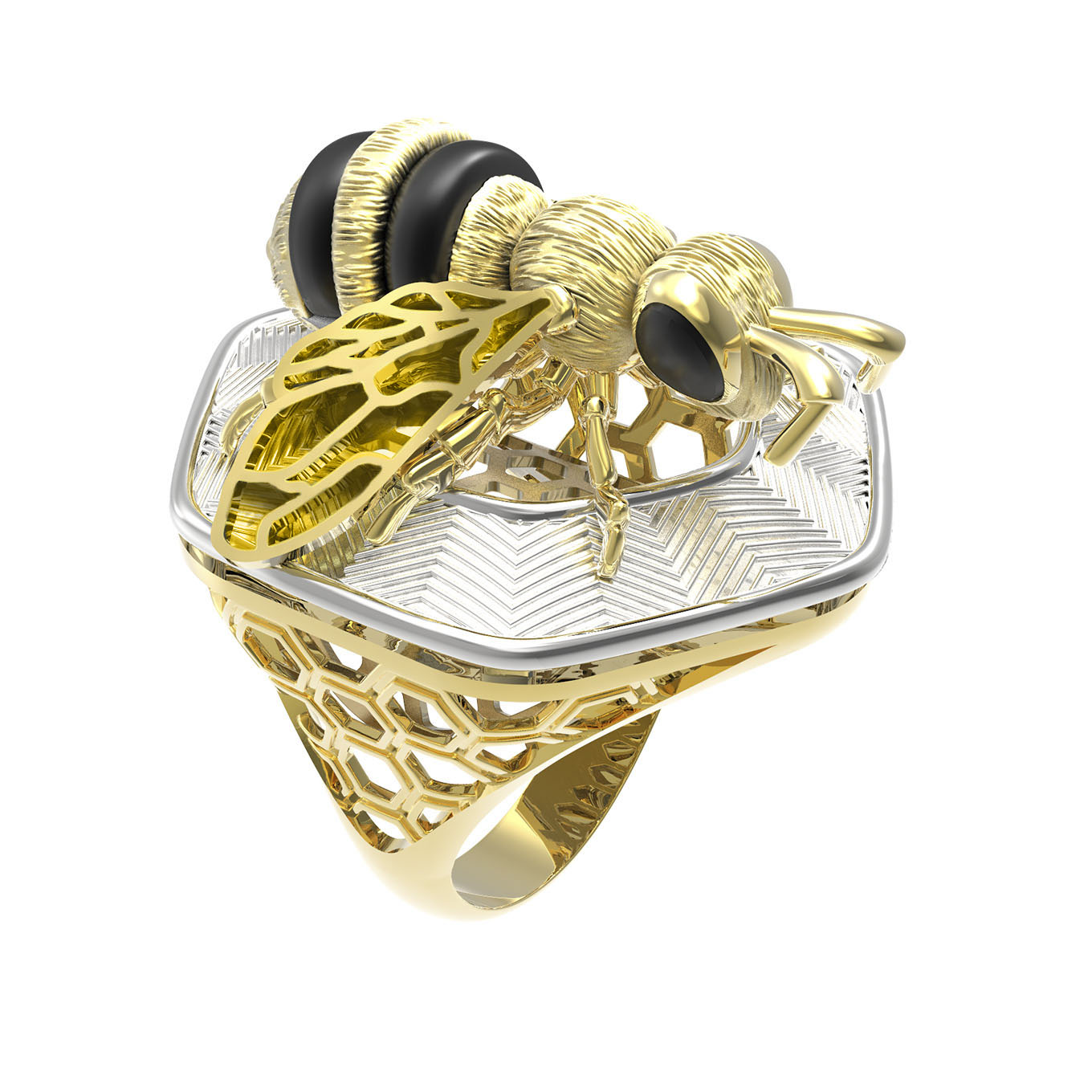 Кольцо из лимонного золота c эмалью, ониксом и эмалью