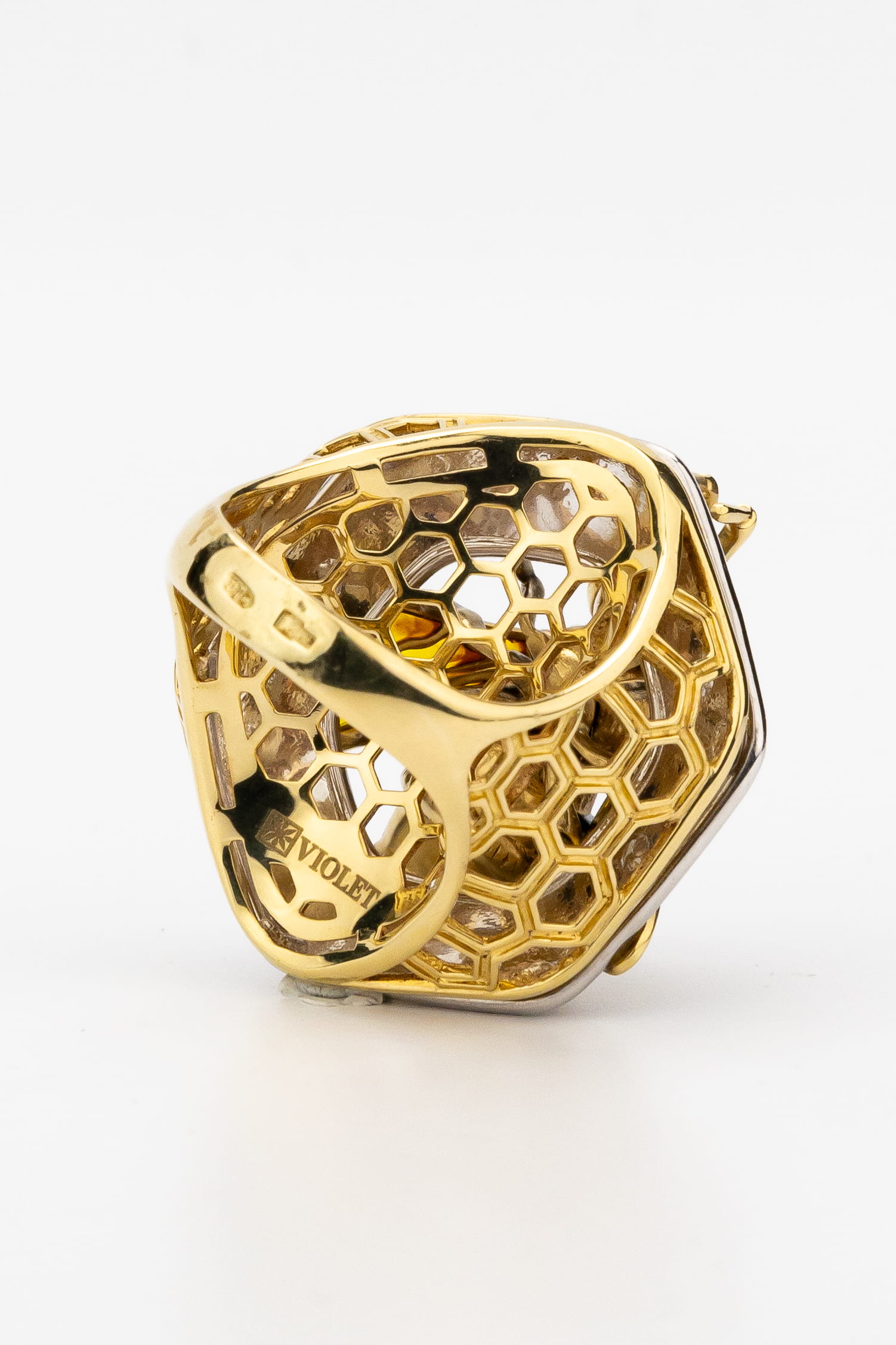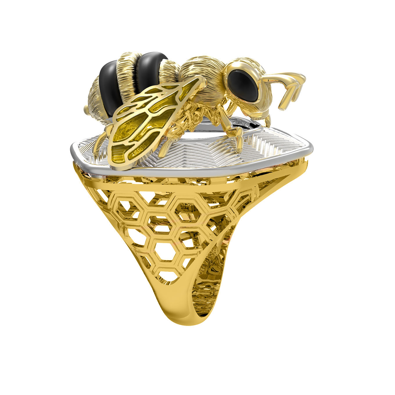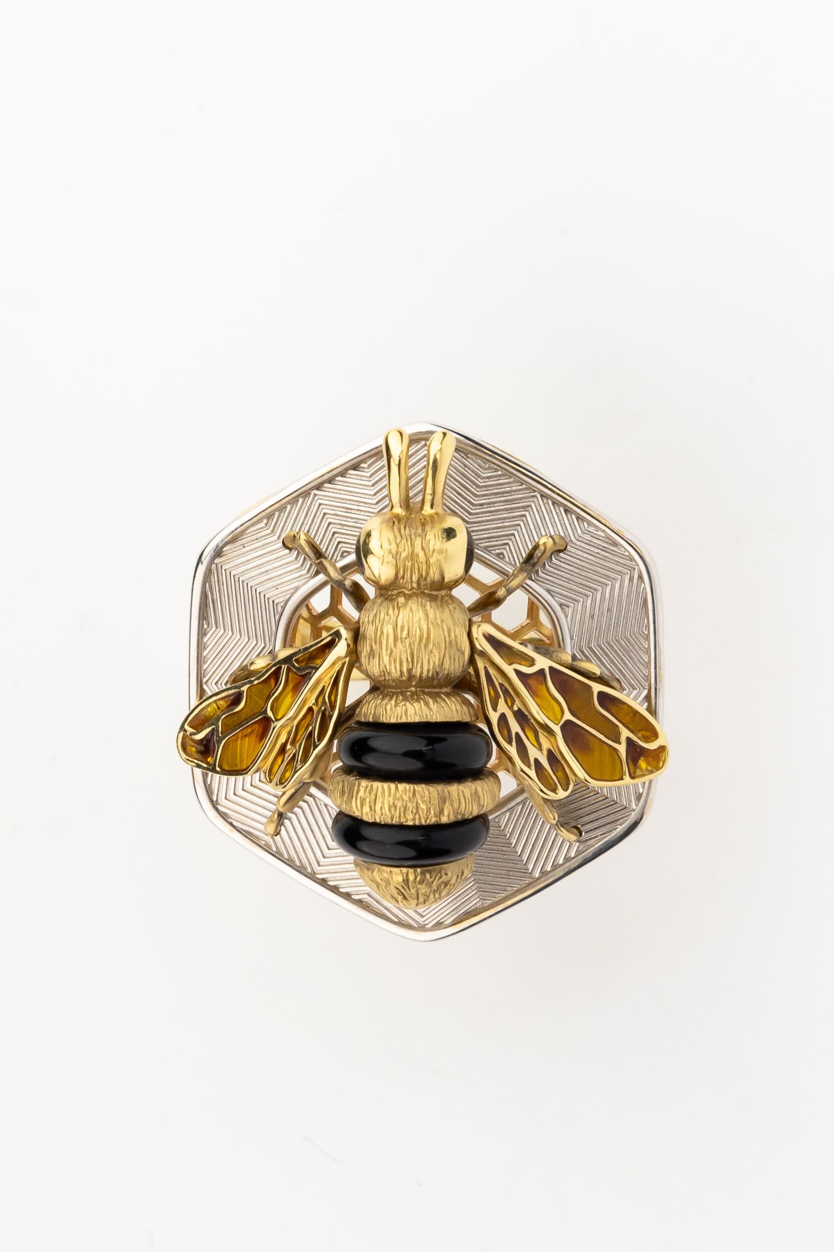 Кольцо из лимонного золота c эмалью, ониксом и эмалью