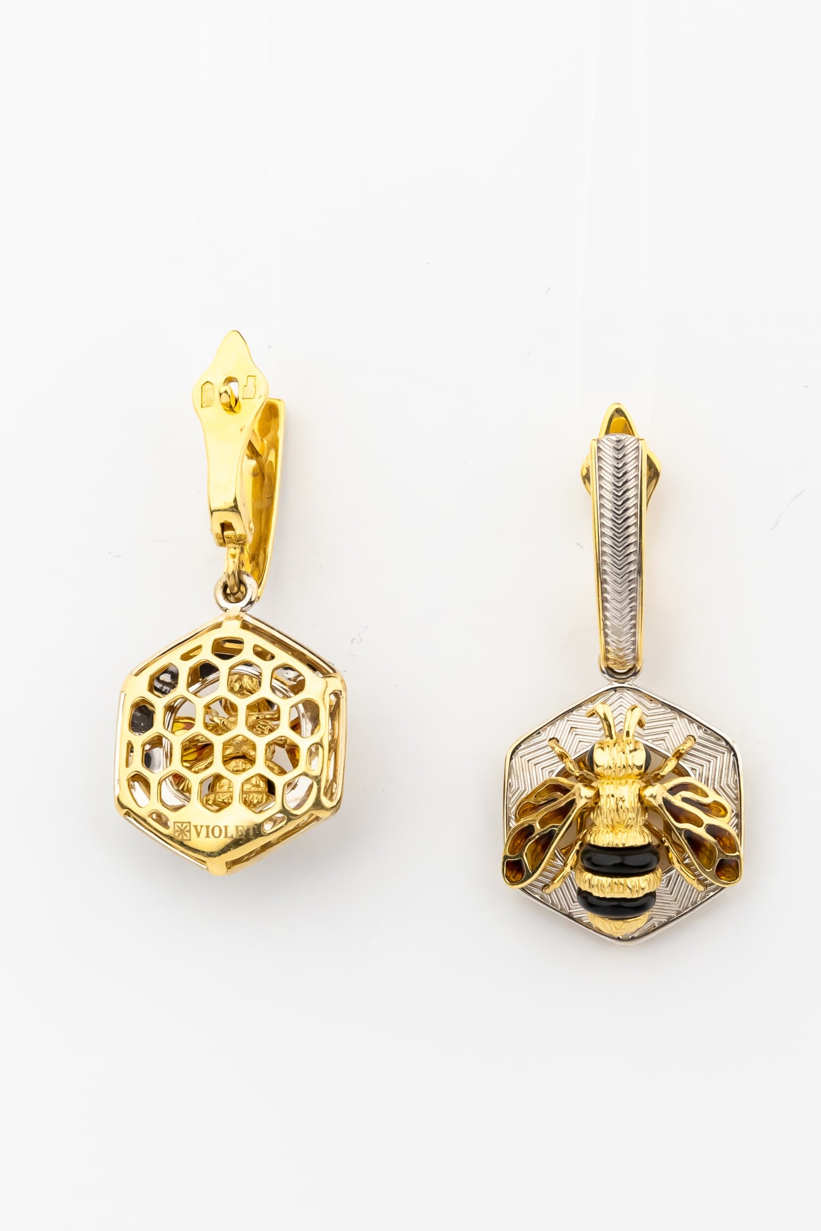 Серьги из лимонного золота c эмалью, ониксом и эмалью
